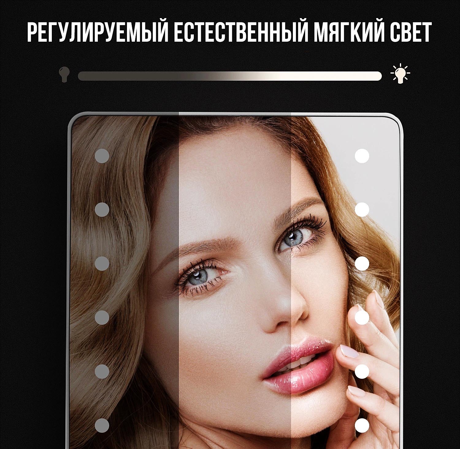 | Особенности | Широкая отражающая поверхность, светодиодная подсветка для качественного макияжа, сенсорное управление подсветкой |