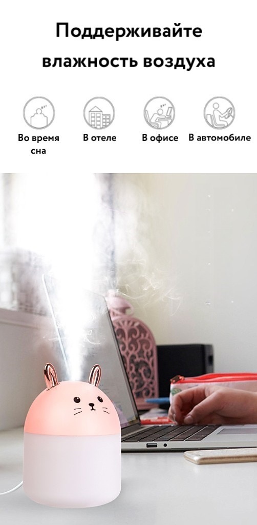 Увлажнитель поможет создать оптимальный микроклимат и обеспечит необходимую влажность в помещении, а разноцветная подсветка создаст приятную и комфортную атмосферу для сна! Если хотите чтобы присутствовал приятный аромат – просто добавьте несколько капель аромамасел.