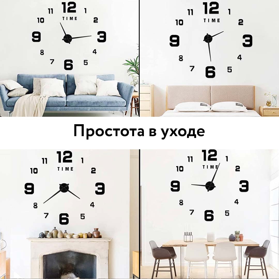 Главная особенность этих часов - регулируемый размер от 60 до 90 см в диаметре. Благодаря этому вы сможете подобрать индивидуальный размер именно под свой интерьер. Часы 3D часы дополняют интерьер, не перегружая его лишними деталями, они вписываются в уже существующую обстановку и подчеркивают ее лучшие стороны.