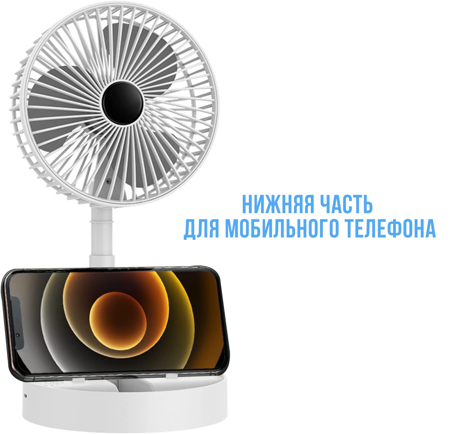 Тип Складной настольный вентилятор USB Цвет Белый Вес 0,3 кг Складная конструкция Телескопическая ручка (регулируется от 29 см до 36 см) Особенности 3 усиленные лопасти и закрытая конструкция Особенности Универсальная подставка для телефона Количество режимов мощности 3 режима Материал корпуса Пластик Мощность 9 вт Питание От USB(кабель в комплекте) Размеры упаковки 17 x 17 x 9(см)