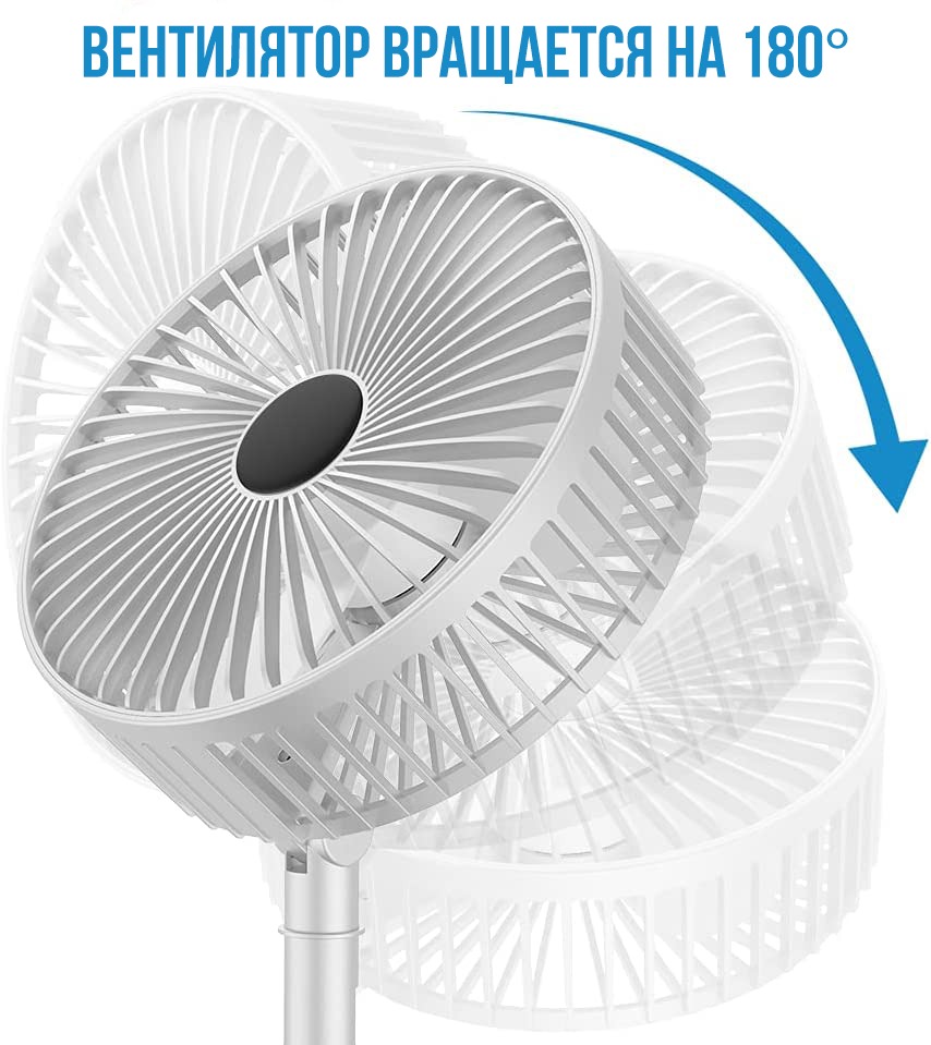 Вентилятор можно регулировать под углом до 180 °, а фиксированный стержень можно растягивать вверх и вниз на 360 мм. Регулируемая скорость ветра и бесшумная работа - 3 уровня управления регулировкой скорости ветра: ветер/мягкий ветер/сильный ветер.
