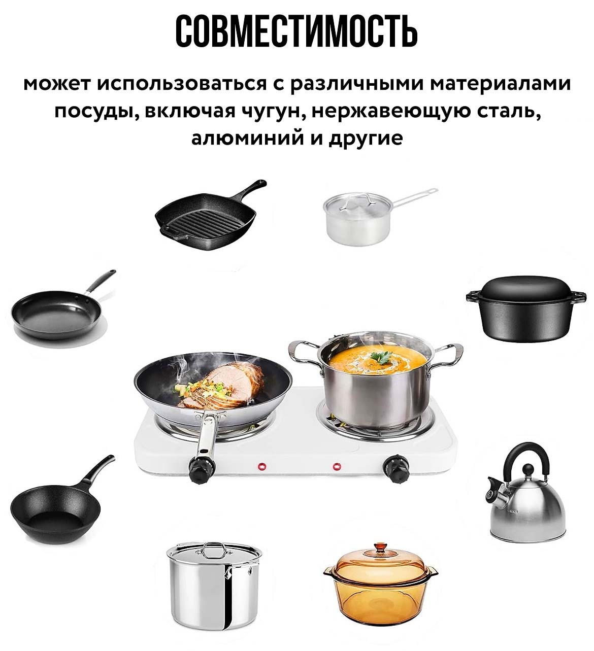 - • Мощность конфорки: 1000 Вт х 2шт;