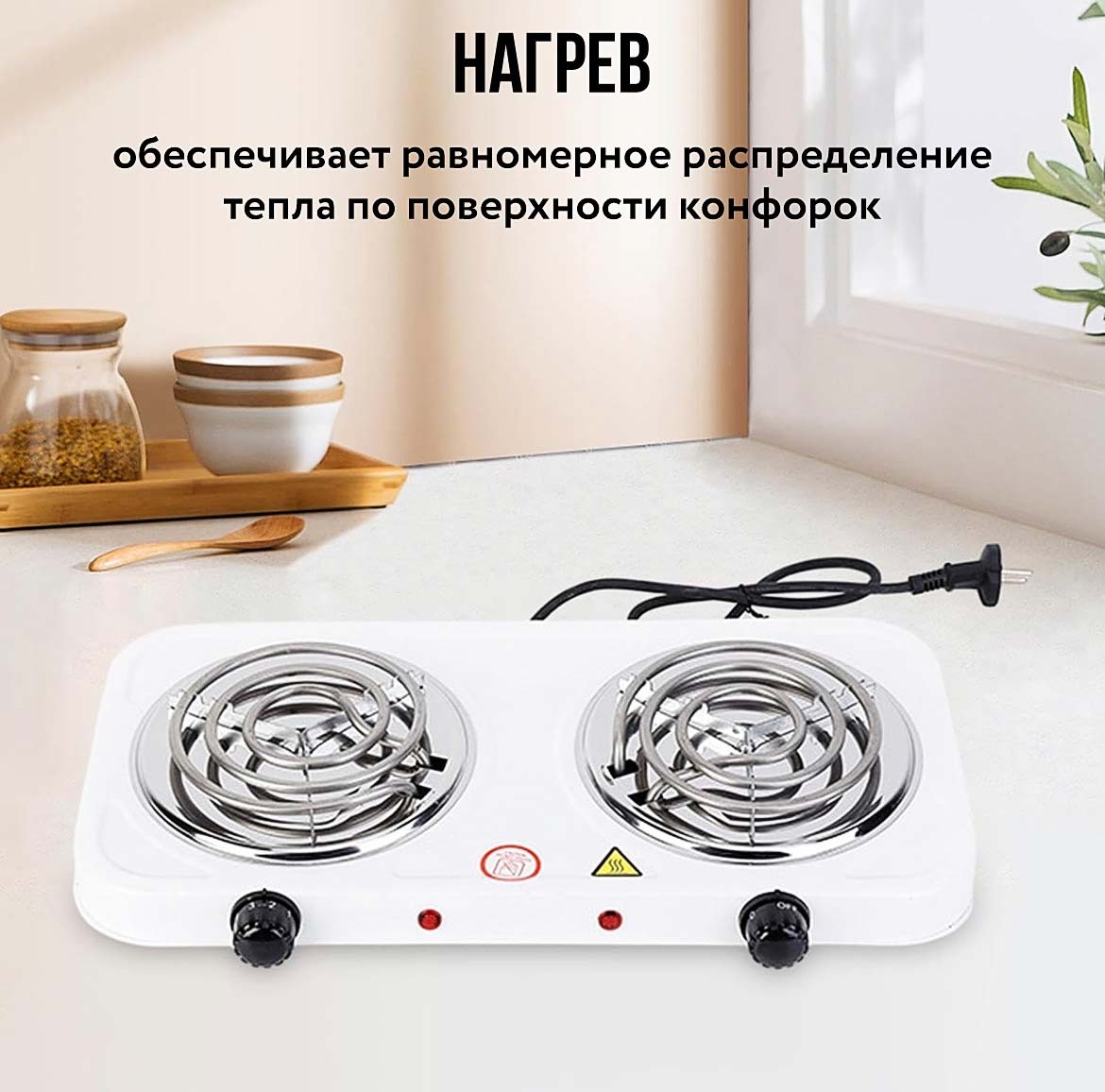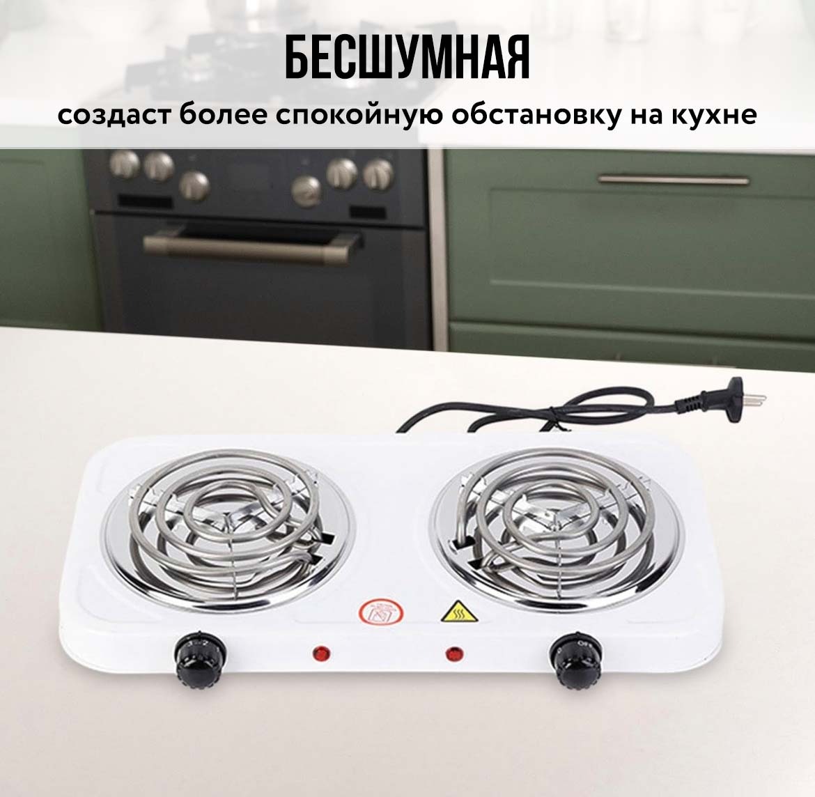 Спиральная электрическая плита на две комфорки 2000W