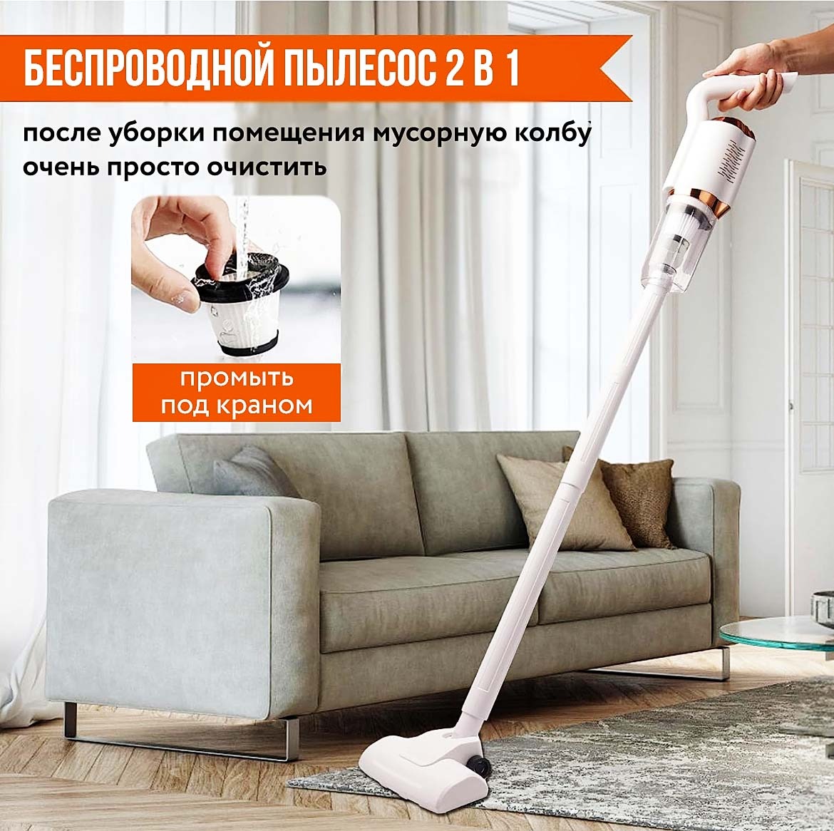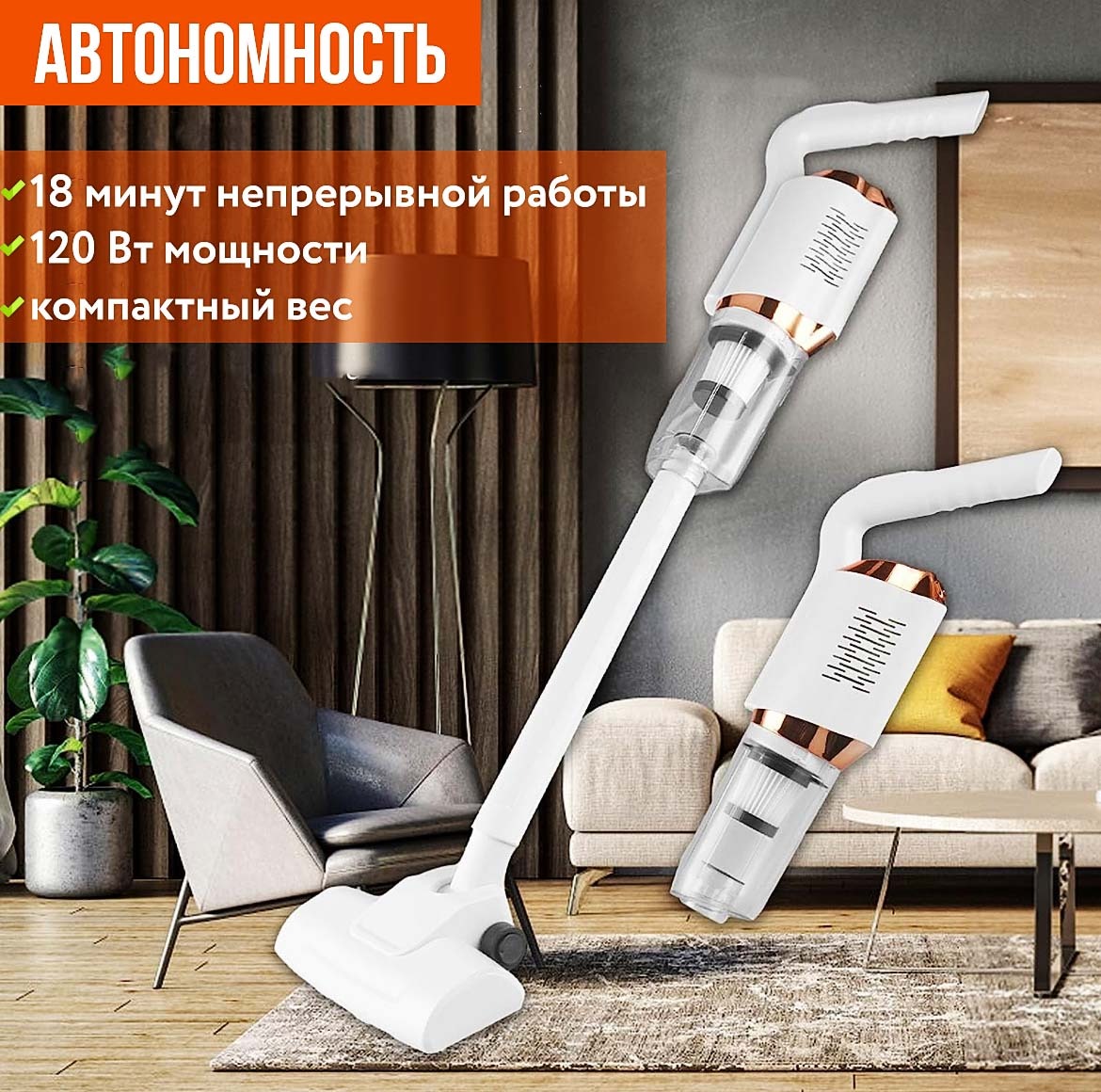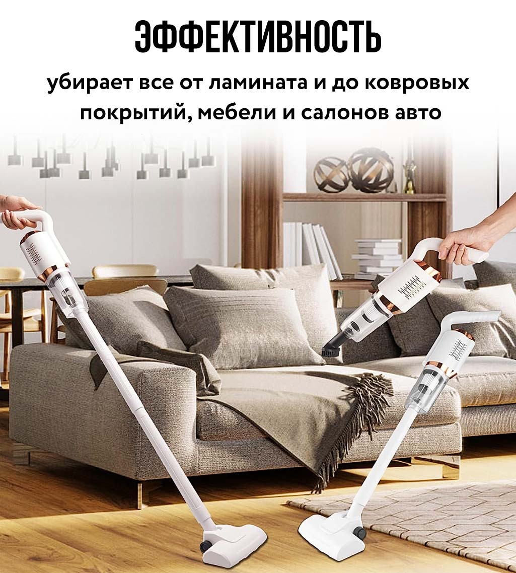 Аккумуляторный беспроводной пылесос 120W c насадками