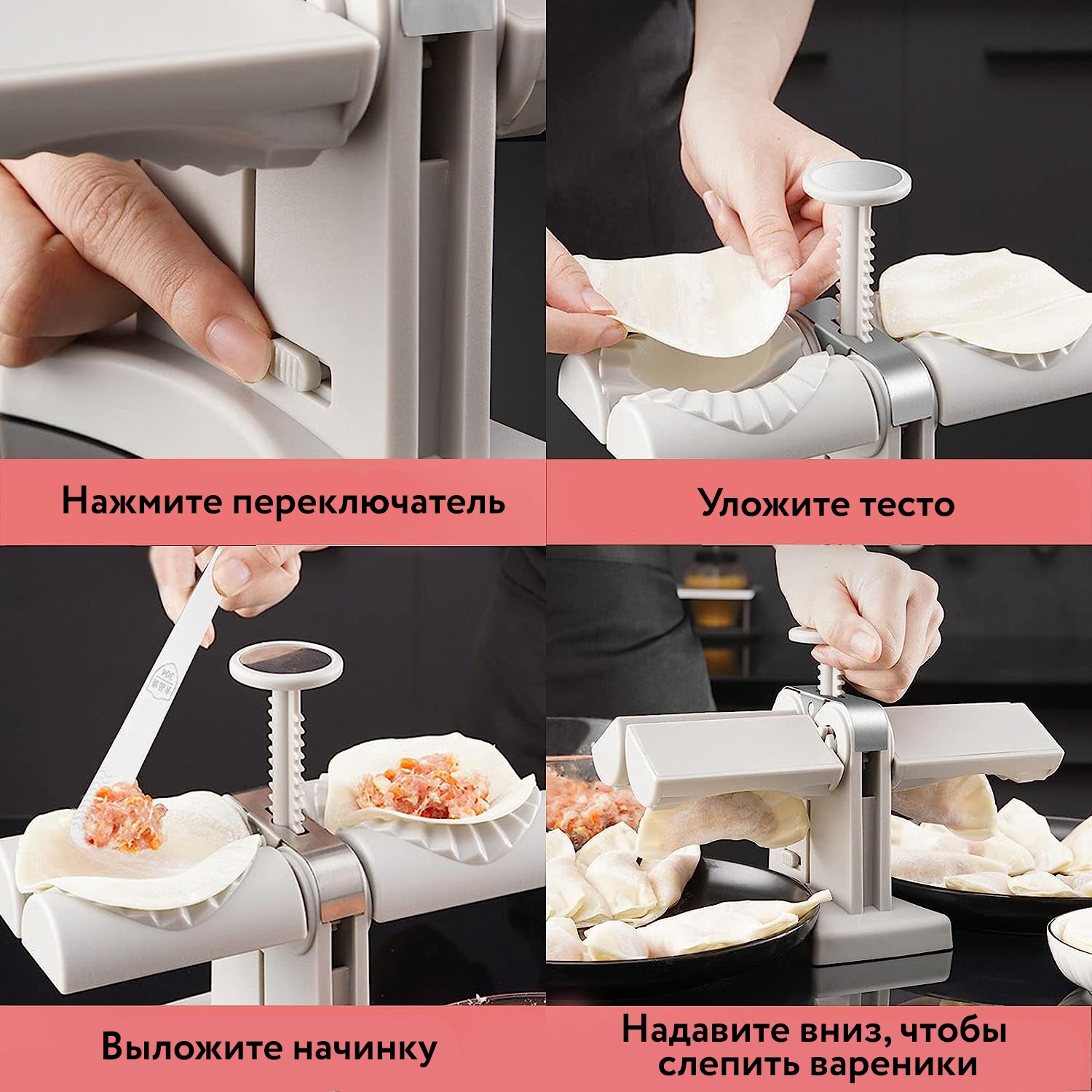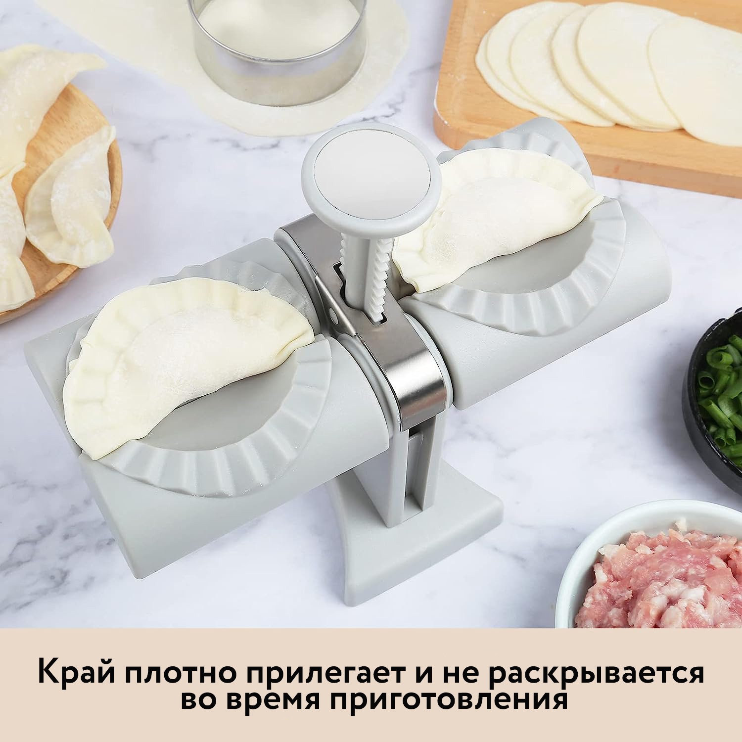 Формовочный станок для кулинарных изделий позволяет легко изготавливать вареники, пельмени, галушки, клецки и другие аналогичные кулинарные изделия. Он изготовлен из высококачественной нержавеющей стали и прочного пластика, что обеспечивает его долговечность. Благодаря противоскользящему резиновому коврику на основании, он устойчив и легок в использовании, даже для новичков. Станок имеет волнистый край, имитирующий ручную работу, что позволяет создавать красивые вареники за короткий промежуток времени. Вы можете использовать различные виды начинки и заворачивать два круга за один раз для быстроты. Очень легко мыть после использования, просто промойте его водой. С двойной головкой и новейшим дизайном, он позволяет экономить время и является отличной кухонной игрушкой для семьи.