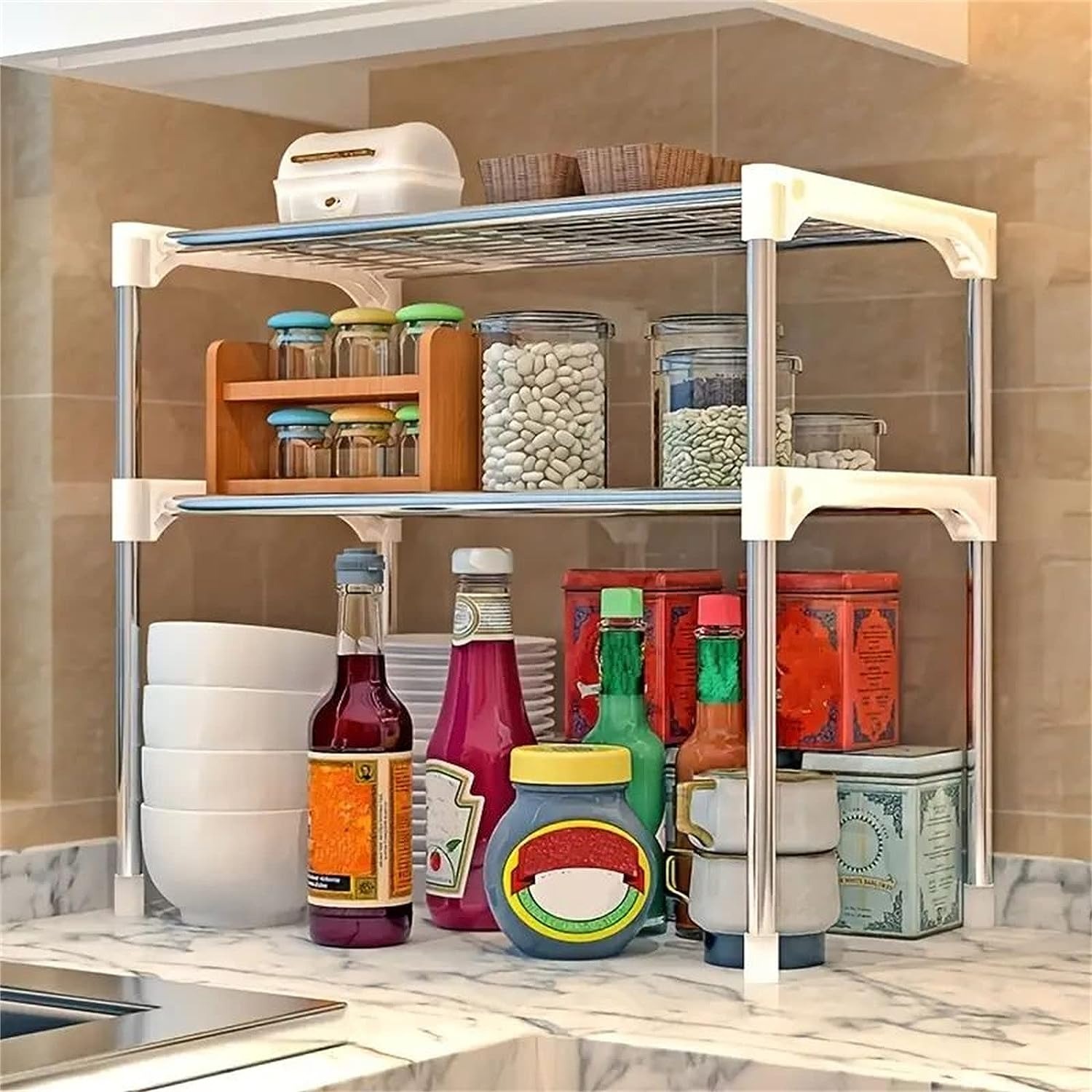 Универсальная телескопическая полка органайзер для микроволновки