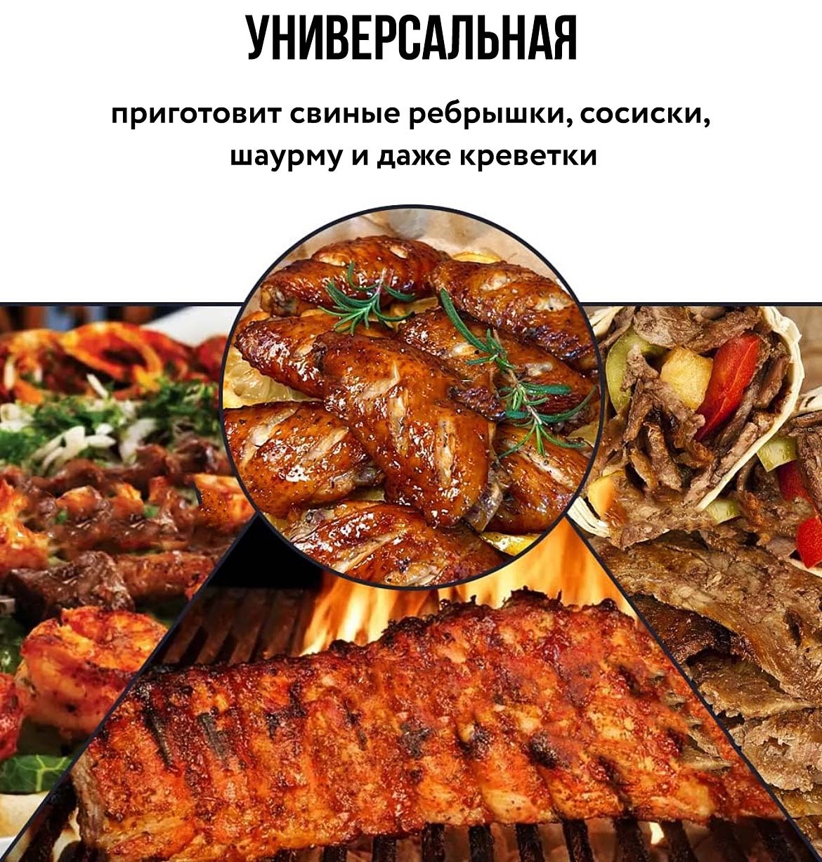 Аппарат прекрасно подходит для небольших предприятий общепита, закусочных, баров, кафе и ресторанов. Блюда готовятся и обжариваются равномерно за счет вращающихся шампуров.