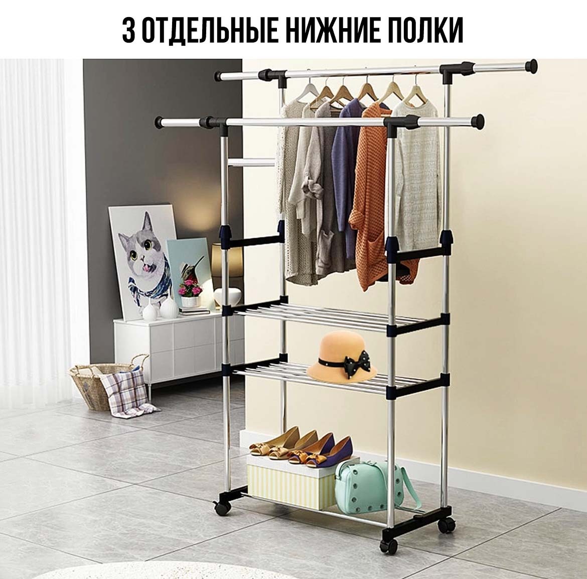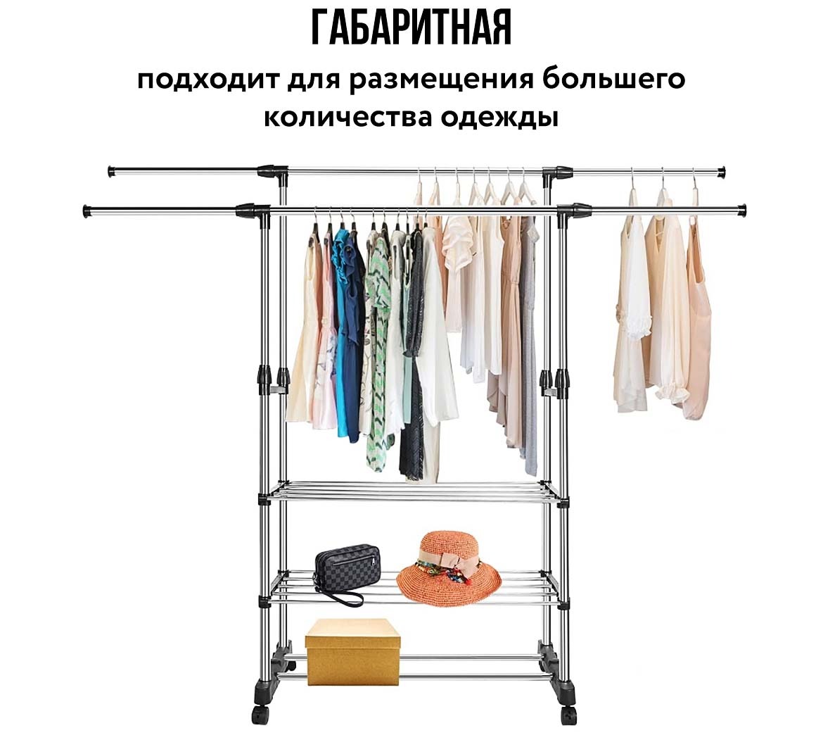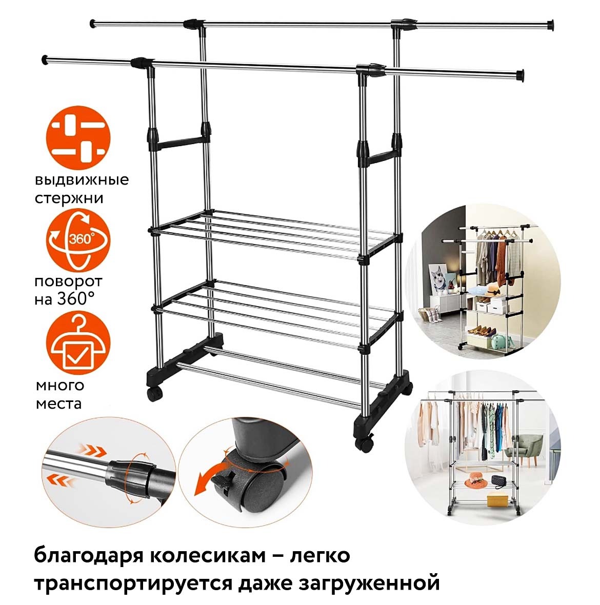 | Наименование товара | Двойная телескопическая вешалка для одежды с полками для обуви 80х36х160 см |