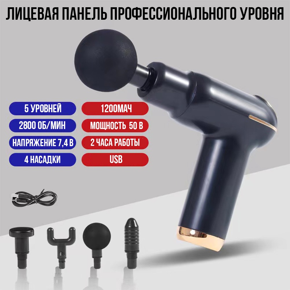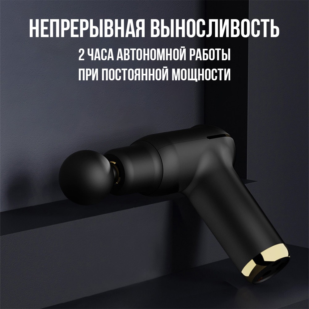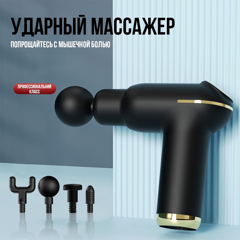 | Комплектация | Мышечный массажер, 4 сменные насадки, зарядное устройство USB, фирменная упаковка |