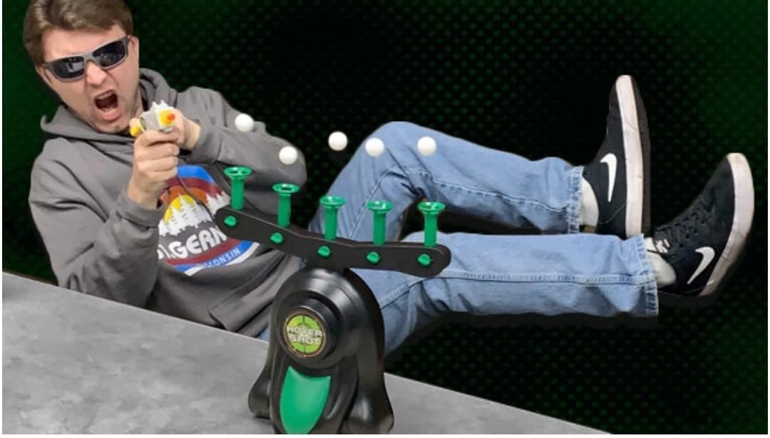 Включите вентилятор и аккуратно поместите один из шариков из пенопласта над каждым из пяти вихрей. Как по волшебству они мгновенно начинают зависать в воздухе.Возьмите пистолет и загрузите в него один из трез пенных дротиков. Потяните петлю, целитесь с помощью встроенных прицелов.