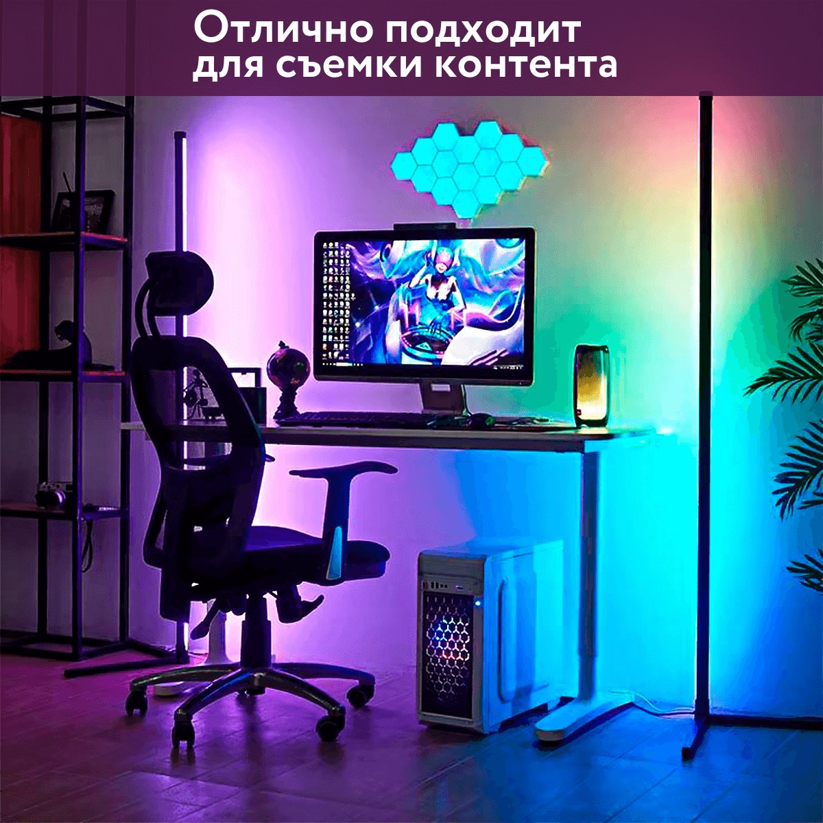 Светильник имеет пульт дистанционного управления.Светильник-торшер отлично подходит для съёмок различного контента в Instagram, YouTube, Tik-Tok