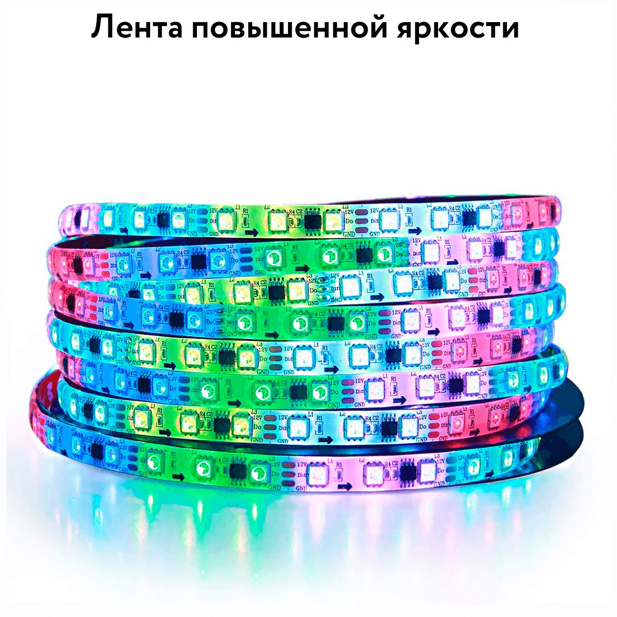 Лента повышенной яркости и цветового спектра. 16 млн цветов на ваш выбор. Контрастные и цветастые. Поддерживает 366+ динамических градиентов.