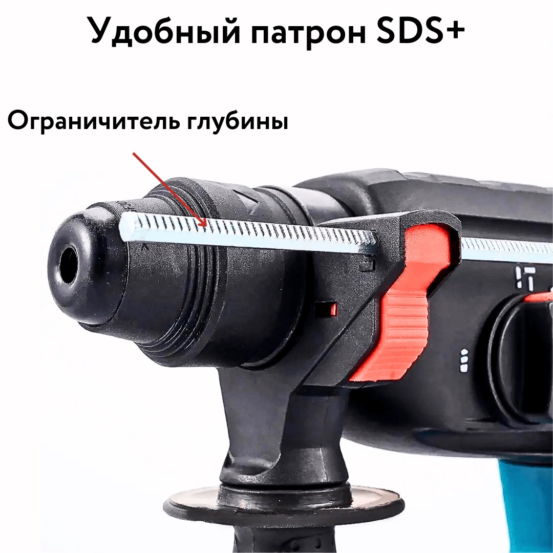 | Особенности | 3 режима работы (сверление, сверление с ударом, долбление), патрон SDS+, компактная и легкая конструкция, эргономичная рукоятка, предохранительная муфта, ограничитель глубины |