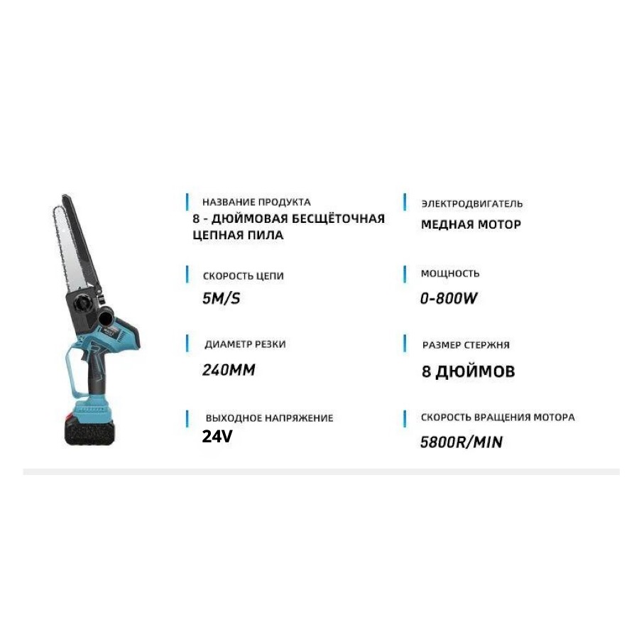 | Наименование товара | Цепная пила работающая на Li-Ion (24 V 4.0 Ah) аккумуляторе |