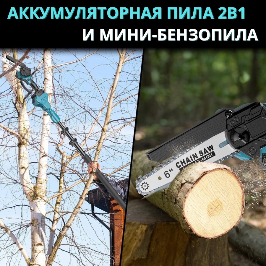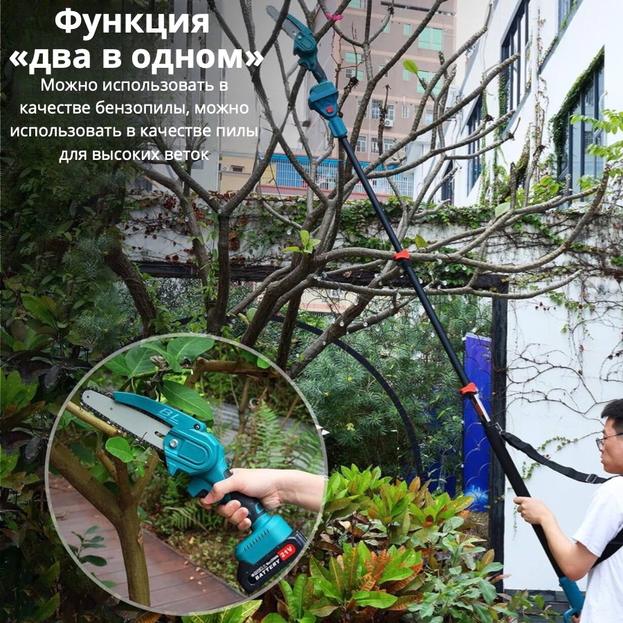 Набор аккумуляторная пила 2АКБ 24V + высоторез удлинитель 2м