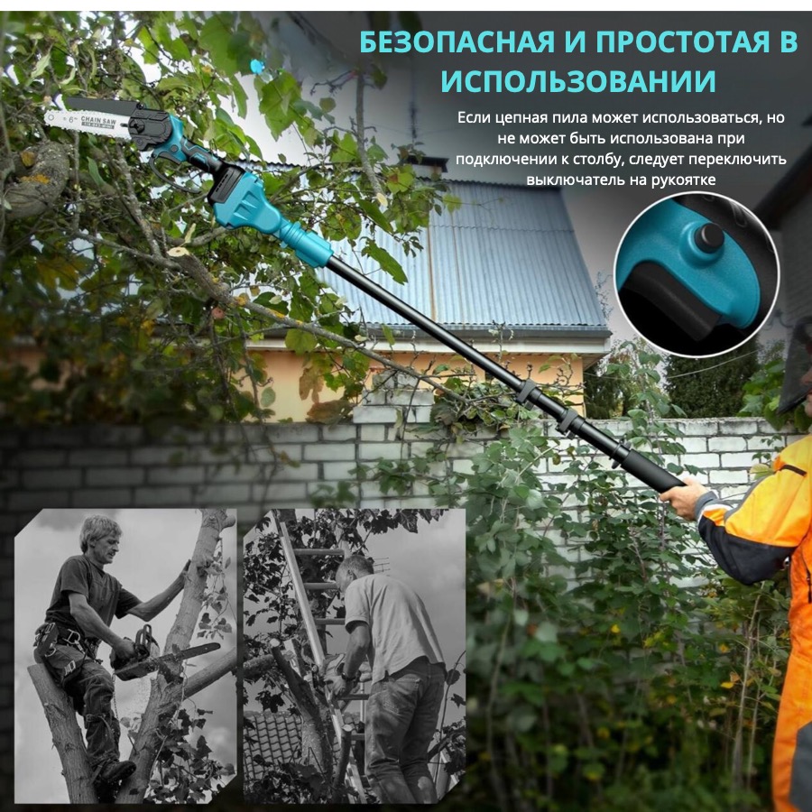 Универсальность – удлинитель подходит для использования с разными моделями цепных пил и аккумулфторных секаторов.