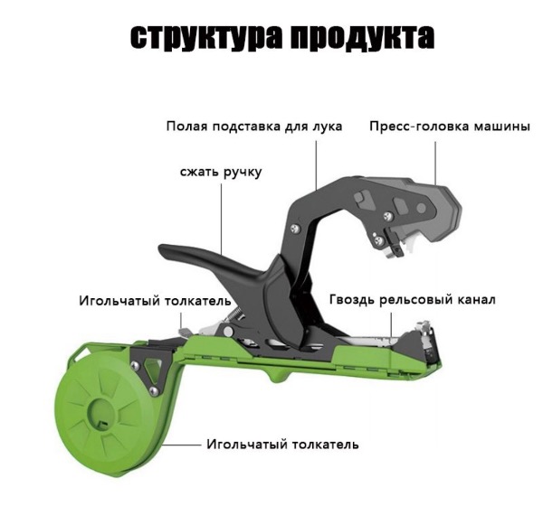 С тапенером вы сможете без труда осуществить подвязывание любых растений, нажать на рычаг, чтобы скоба надежно закрепила растение в теплице и в саду.