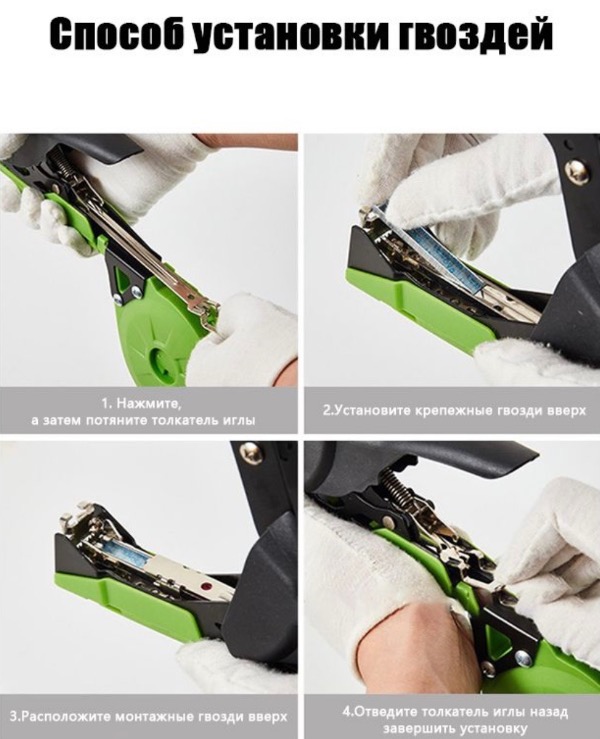 Данный товар поможет вам сэкономить время и увеличить продуктивность работы и повязки овощей, деревьев, кустов винограда. Больше не нужно тратить время на поиск и подбор крепежных устройств, с садовым степлером вы всегда будете готовы к работе в палисаднике.