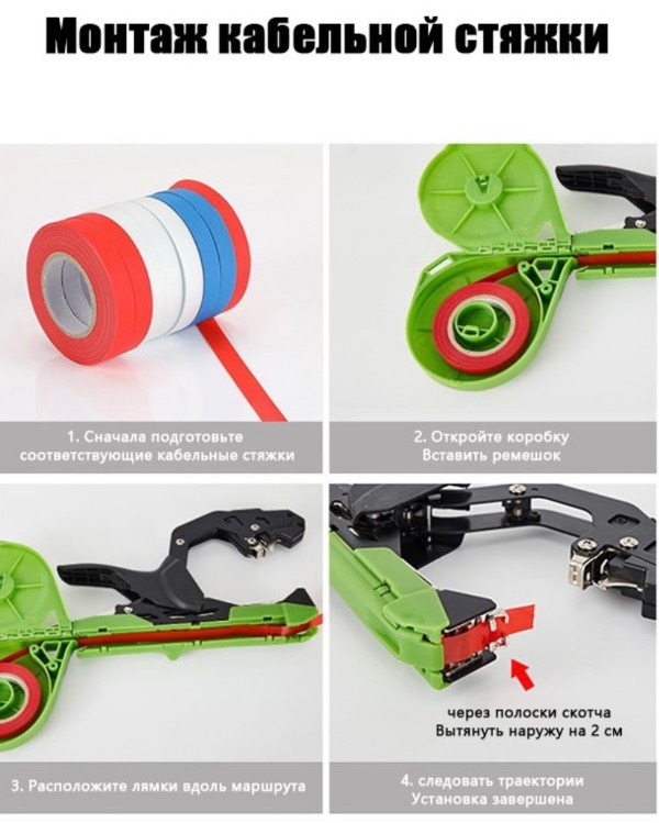 | Преимущества | Быстрая и эффективная обвязка, Прочное и надежное крепление, Экономия времени и усилий, Универсальность для кустов и деревьев, Простота использования, Качественные результаты, Долговечность и надежность |