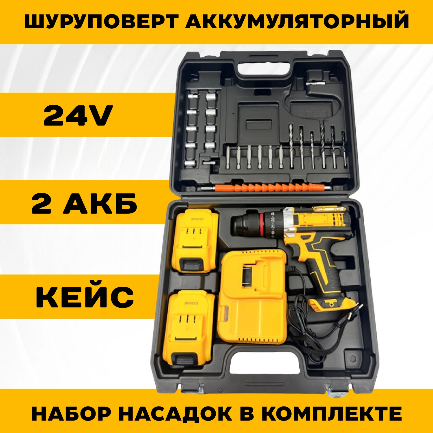 Аккумуляторный шуруповерт. Набор слесарного инструмента в чемодане 24v