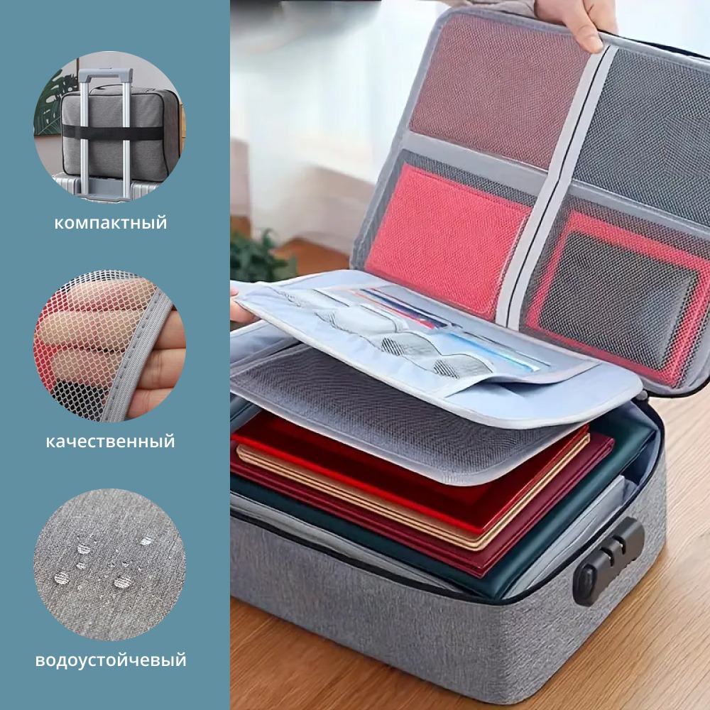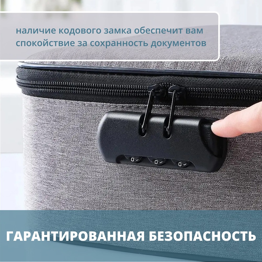 Сумка-органайзер для путешествий с кодовым замком является отличным вариантом для упорядочения и защиты важных документов как во время путешествий, так и дома. Она одновременно компактная и вместительная - ее пространства достаточно для организованного хранения паспортов, билетов, денег и других необходимых вещей.