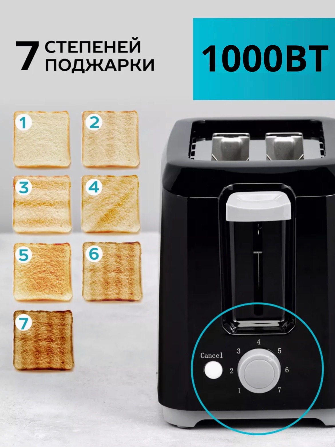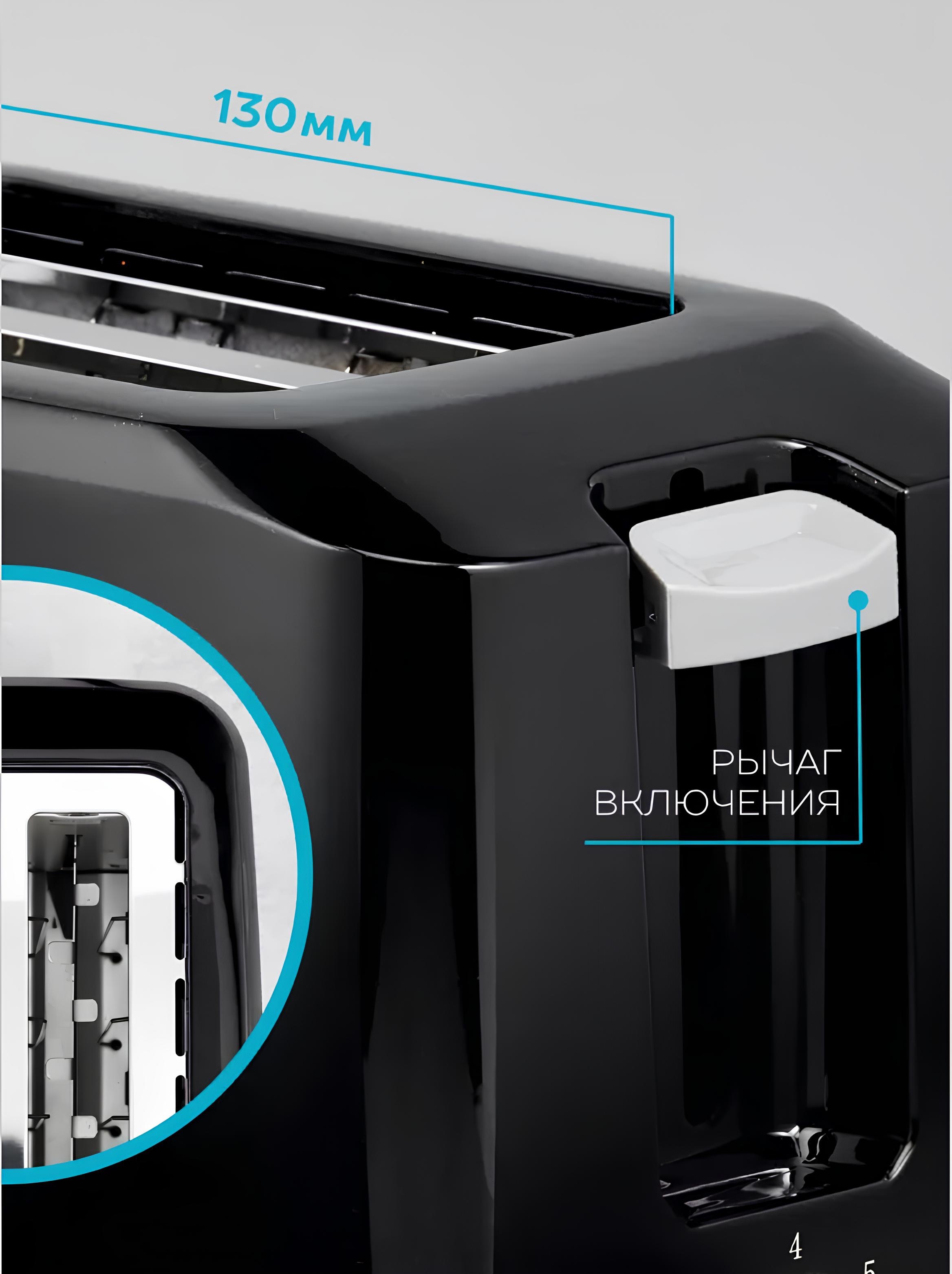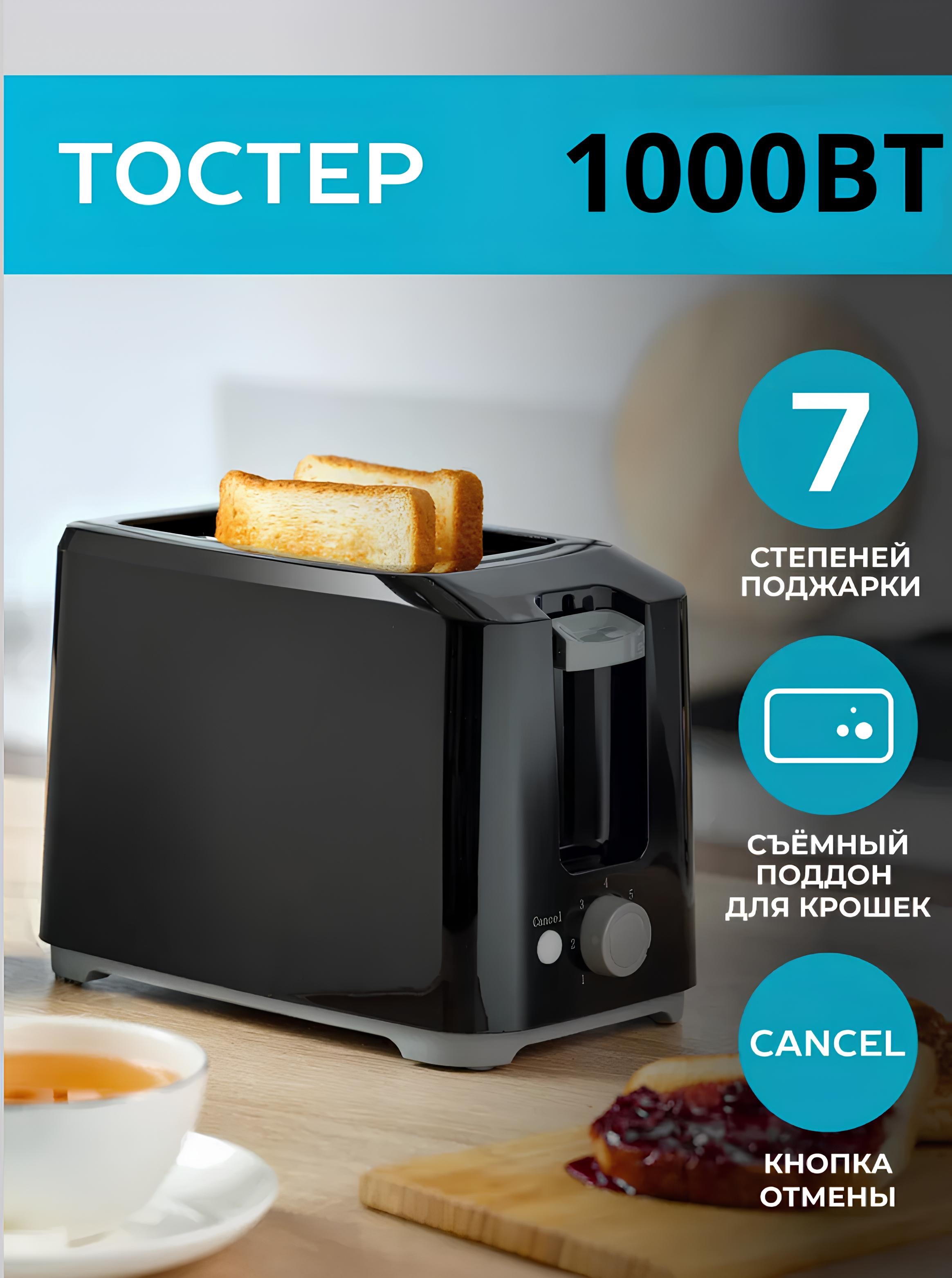 С мощностью 1000 Вт тостер обеспечит быструю и равномерную обжарку.