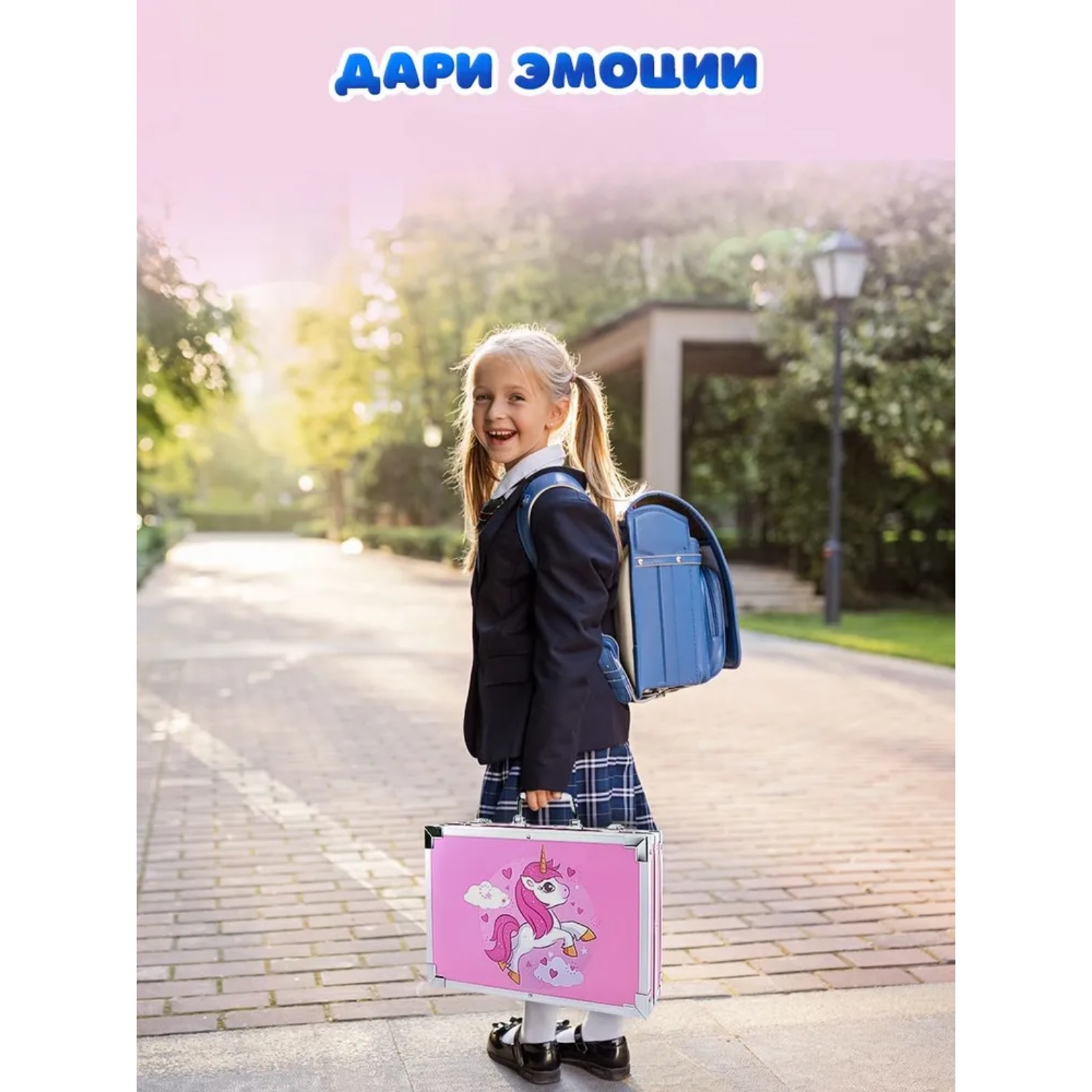 Набор для рисования Единорог в алюминиевом чемодане 145 предметов Голубой