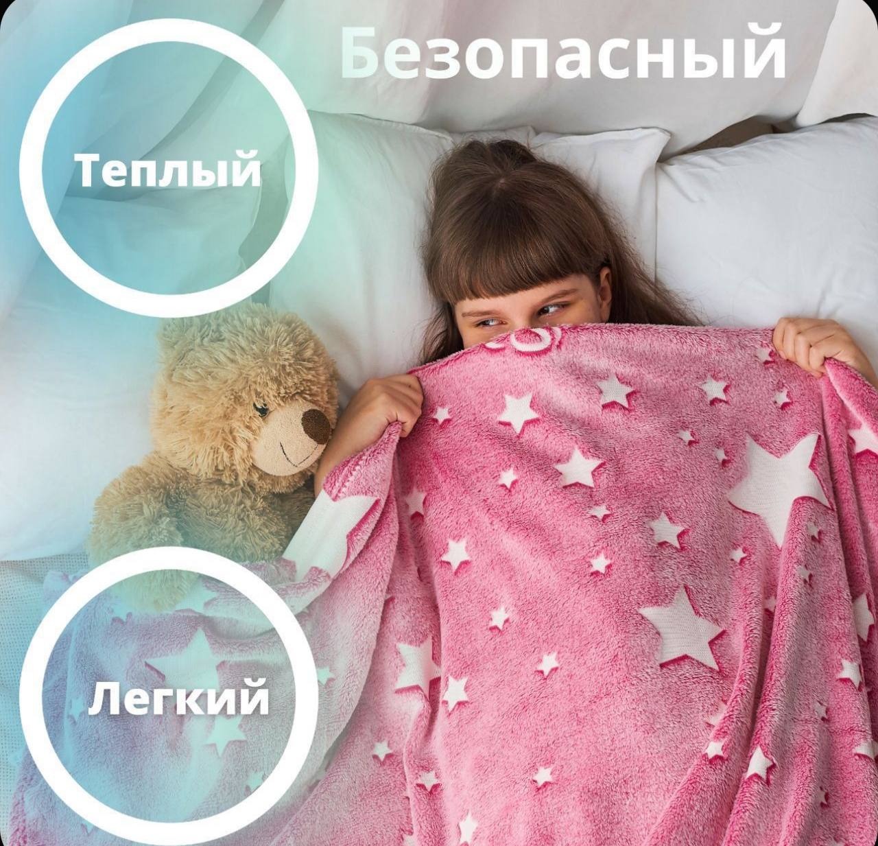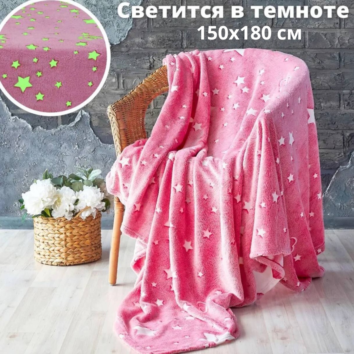 Детский розовый плюшевый плед, светящийся в темноте, размером 150x180 см