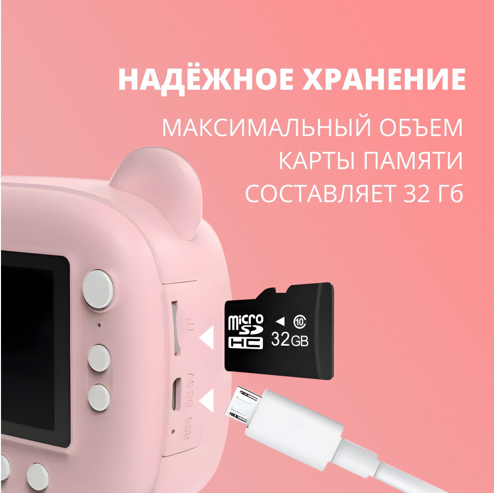 Детский фотоаппарат – это увлекательное и удобное устройство интересного дизайна, которое позволяет детям не только фотографировать, но и мгновенно распечатывать свои снимки. Этот прибор сочетает в себе простоту использования, безопасность и множество творческих возможностей, что делает его идеальным подарком для маленьких фотографов. Встроенный аккумулятор заряжается через USB, обеспечивая длительное время работы и удобство использования. Интуитивно понятный интерфейс и удобные кнопки делают фотоаппарат легким в использовании даже для самых маленьких пользователей. Детям не потребуется длительного обучения, чтобы начать фотографировать.