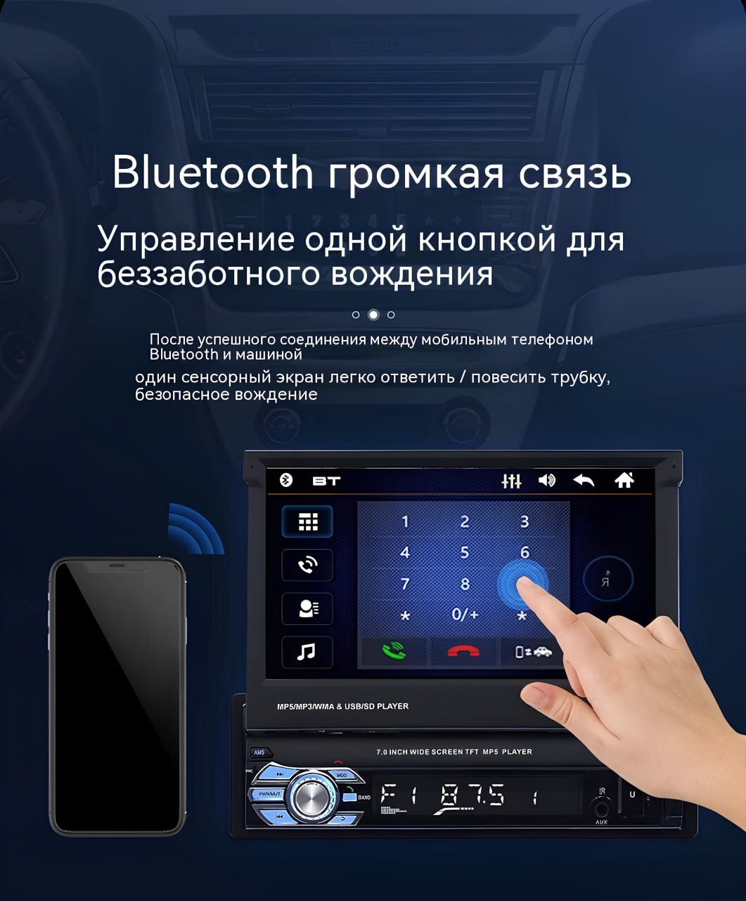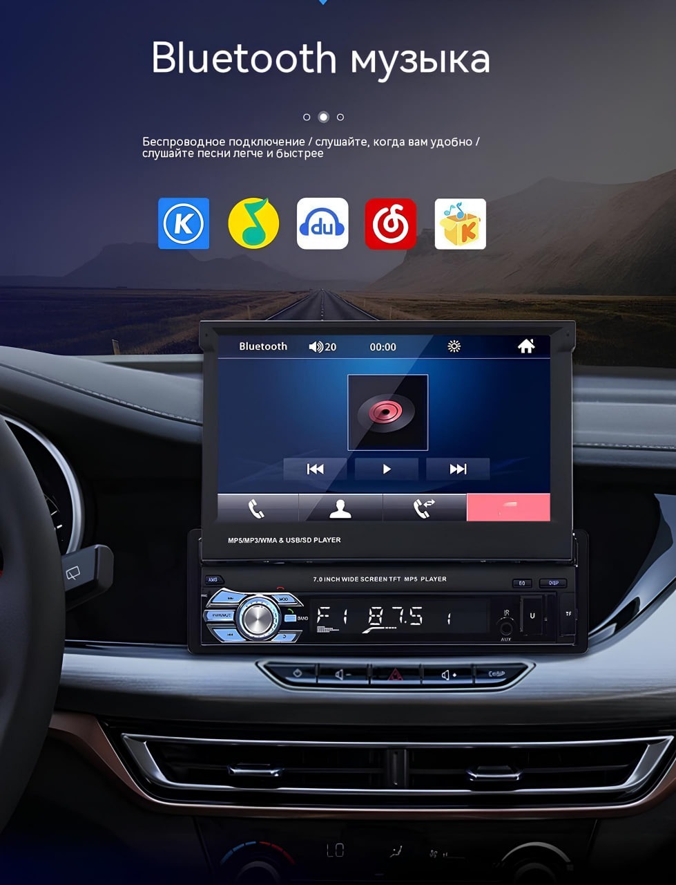 - Дисплей: 7" выдвижной моторизированный сенсорный TFT (Touch Screen)