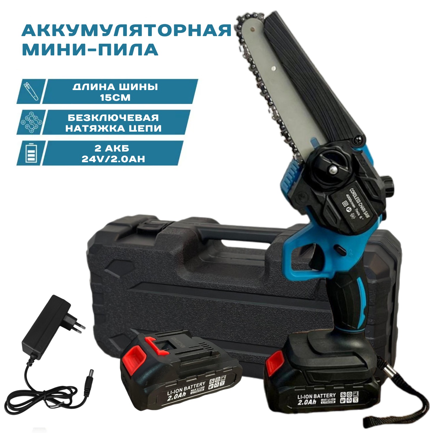 Цепная пила 2 АКБ 24V 6 дюймов в кейсе с отсеком для масла
