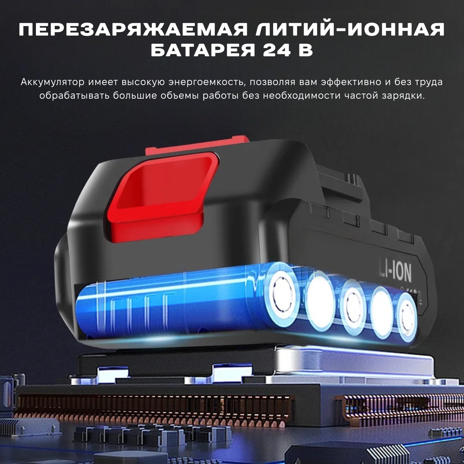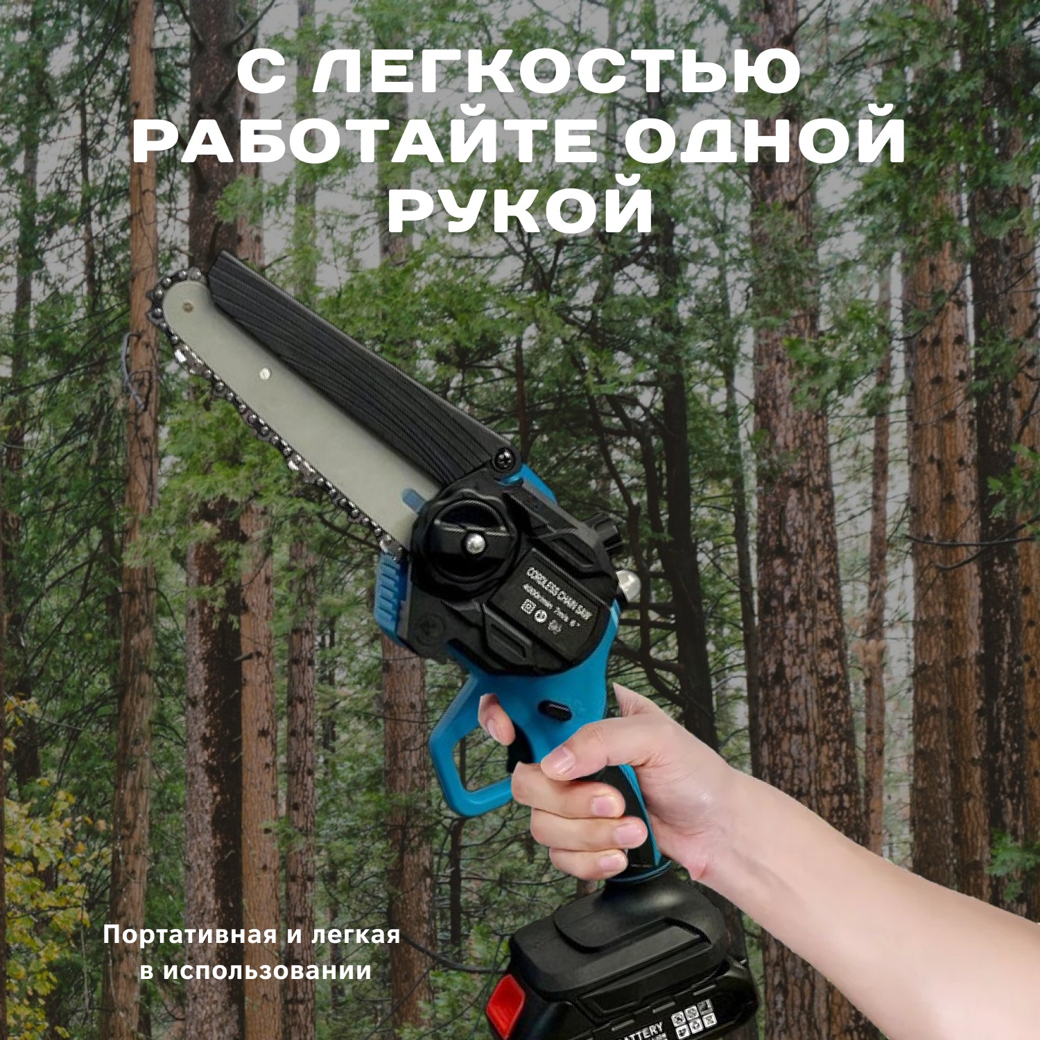 Аккумуляторная мини-пила — это высококачественный инструмент, предназначенный для упрощения работы по обрезке и удалению веток. Оснащённая 24-вольтовым аккумулятором ёмкостью 2 Ач, она обеспечивает достаточную мощность и длительное время работы. Высокоёмкий аккумулятор позволяет продуктивно выполнять большой объём задач без частой подзарядки, что особенно удобно при работе на обширных территориях или вдали от источников питания. Компактный и лёгкий корпус пилы делает её простой и удобной в использовании. Эргономичный дизайн обеспечивает надёжный хват и отличную маневренность, позволяя легко и точно обрезать ветки. Пила оснащена прочной цепью, которая обеспечивает высокую производительность и долговечность при работе с различными типами деревьев и веток, позволяя эффективно справляться с задачами обрезки.