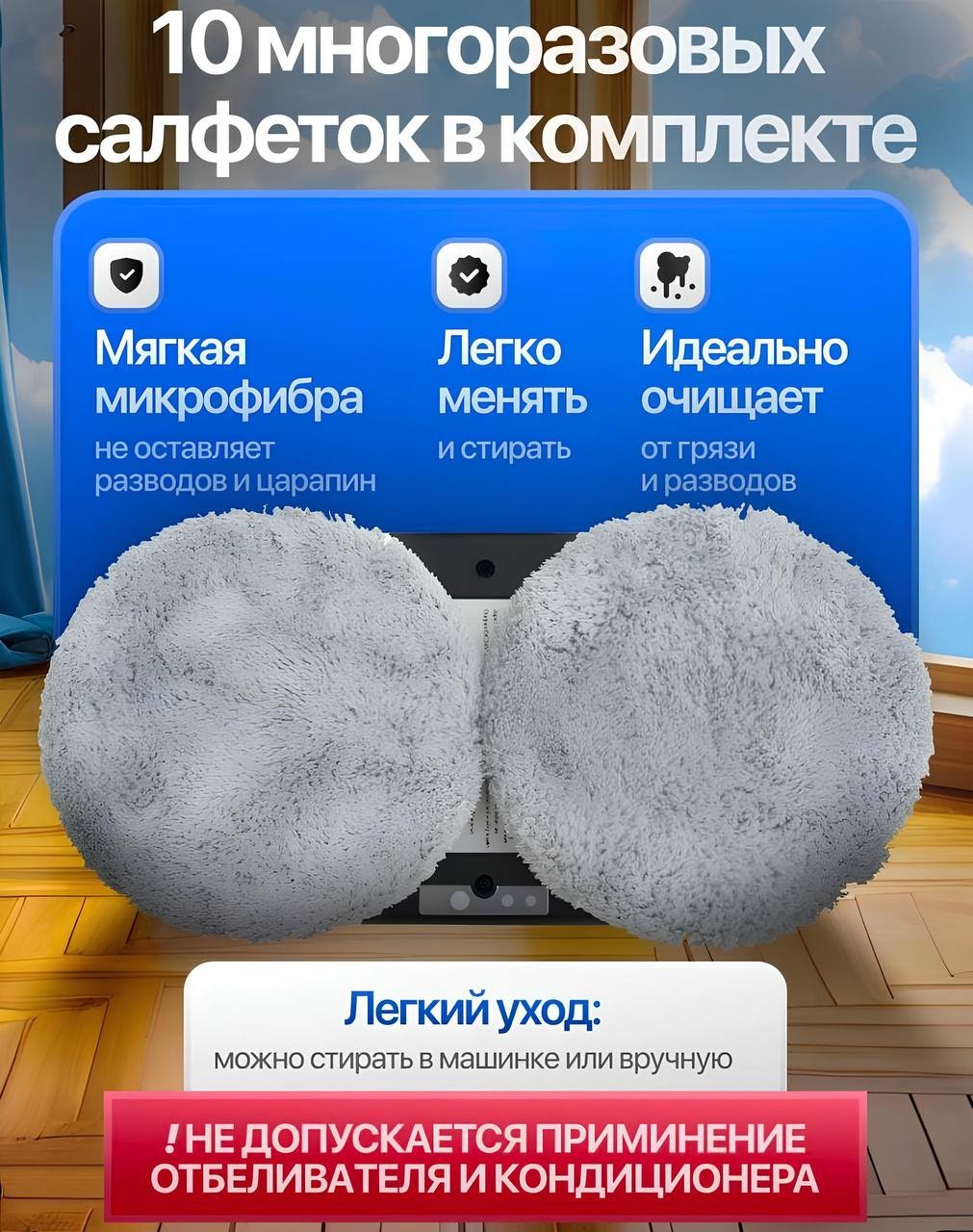 Робот для мытья окон + Салфетки для робота мойщика окон (круглые) 4 шт в подарок