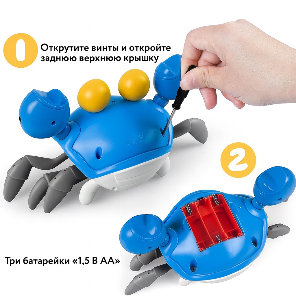 Представьте, как во время игры ваш ребенок начнет повторять движения крабика и танцевать вместе с ним, а это точно способствует развитию его физических, координационных и моторных навыков вашего юного спортсмена.Игрушка изготовлена из безопасных и прочных материалов, чтобы вы могли быть уверены в ее качестве и долговечности. Она работает от 3 батареек типа АА (ознакомьтесь, пожалуйста, с комплектом поставки ниже), что позволяет использовать ее в любом месте без необходимости подключения к электросети.