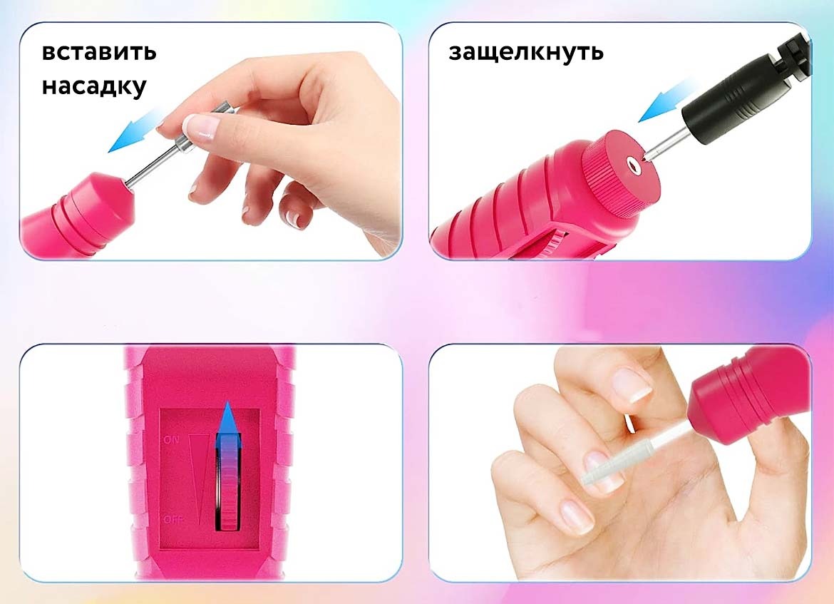 Фрезер предназначен для аппаратного маникюра (в том числе коррекции искусственных ногтей) и педикюра. Применим от начинающего до профессионального уровней. Аппарат прекрасно справляется с обработкой как натуральных ногтей, так и искусственных.