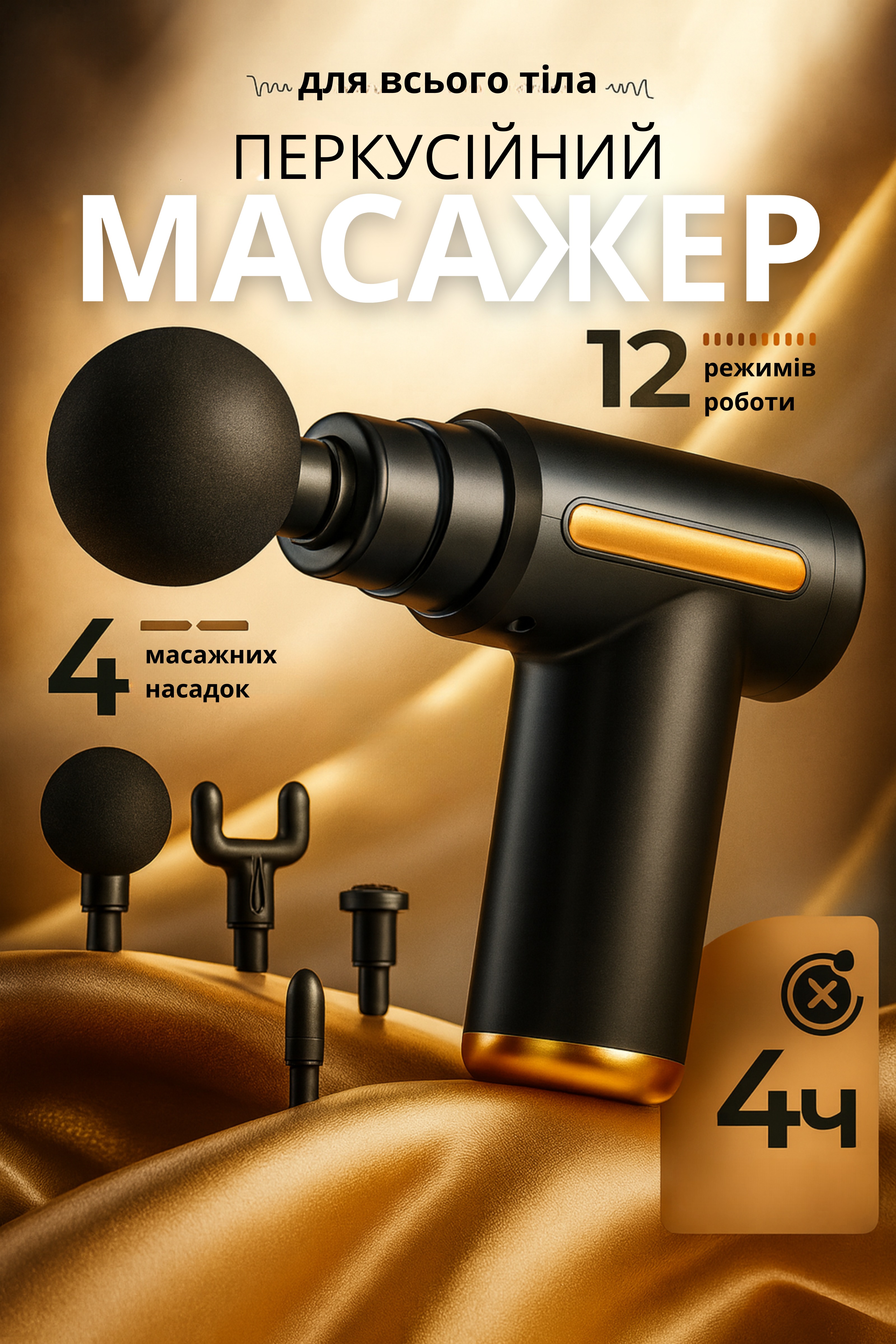 Акумуляторний ударний масажер для всього тіла з 4 насадками