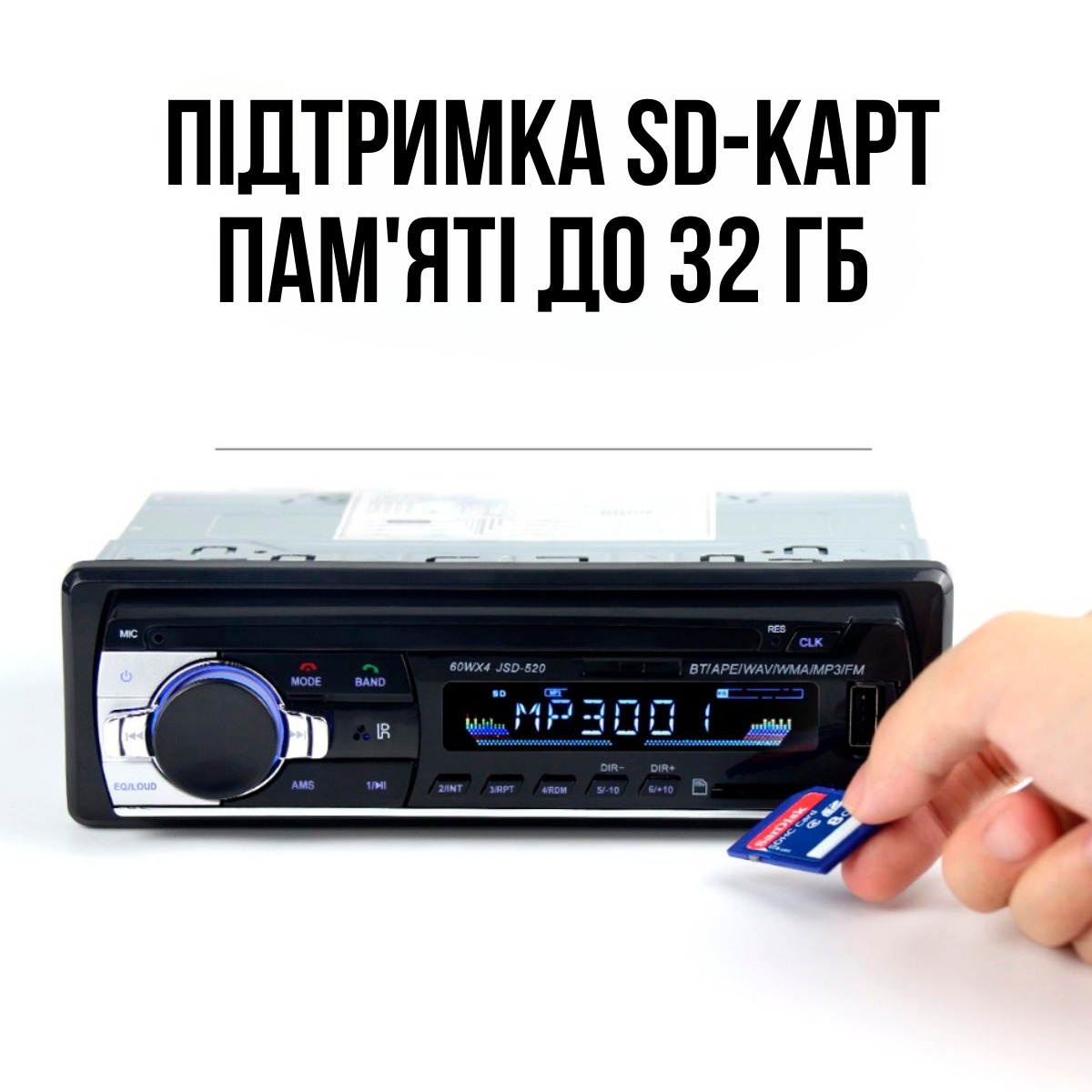 - Режими підтримки: BT/APE/WAV/WMA/MP3/FM.