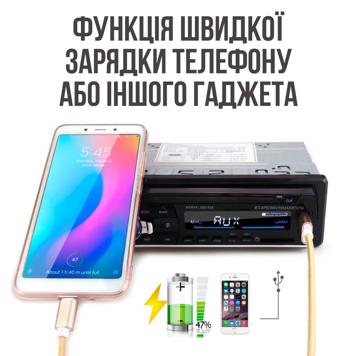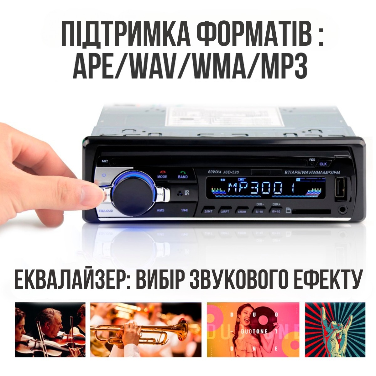 - Підтримка музичного формату MP3/WMA;