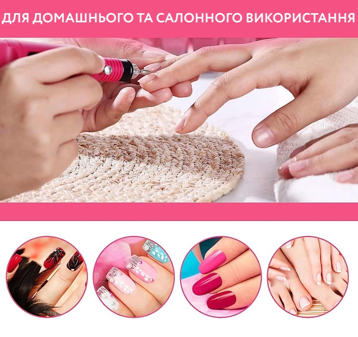 Фрезер призначений для апаратного манікюру (у тому числі корекції штучних нігтів) та педикюру. Застосуємо від початківця до професійного рівнів. Апарат чудово справляється з обробкою як натуральних нігтів, так і штучних.