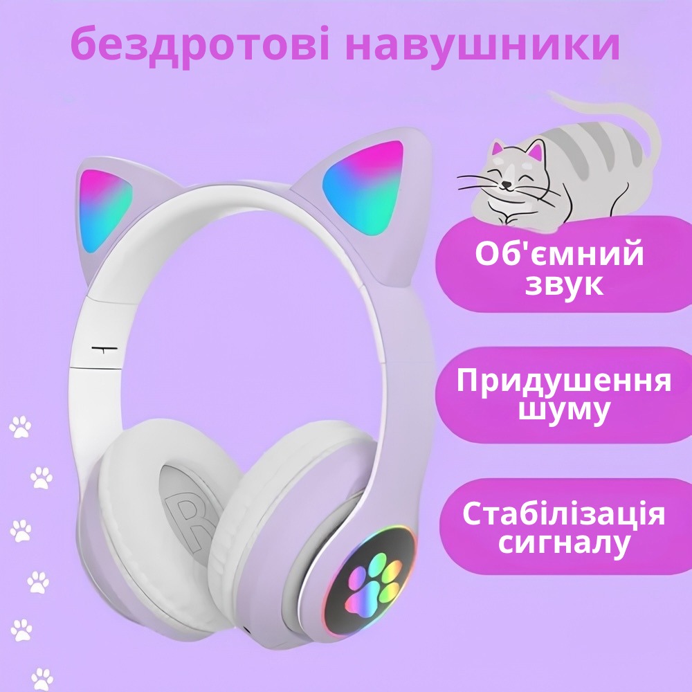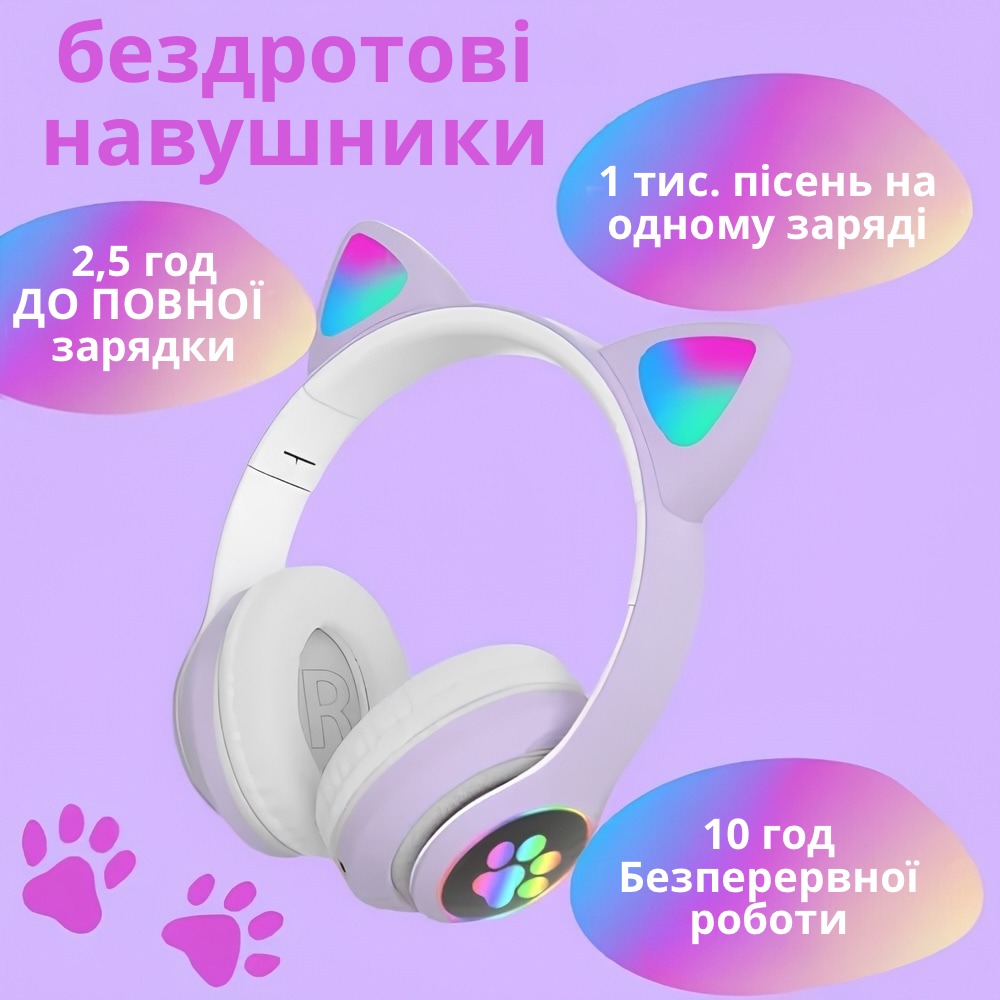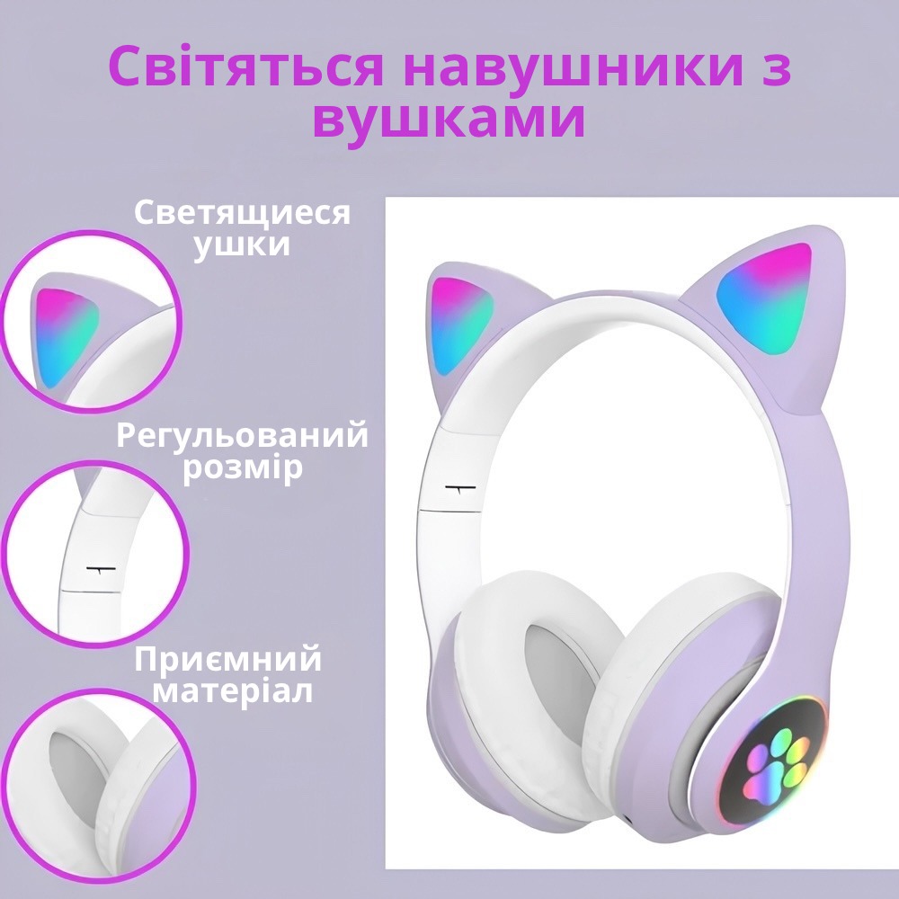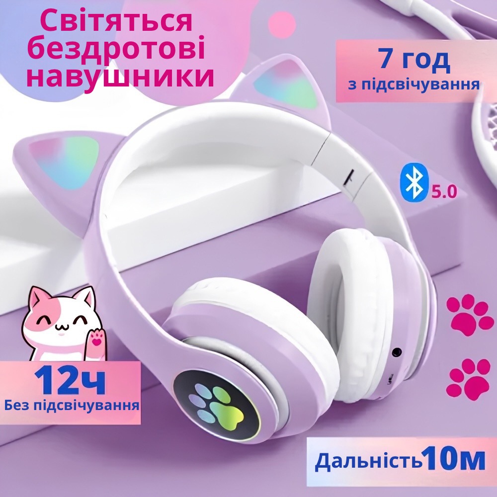 Нові навушники у вигляді котячих вушок - це захоплюючий подарунок, здатний викликати захоплення у дітей. Їх незвичайний та стильний дизайн з вушками кішки та яскравим підсвічуванням створює веселу атмосферу. Сумісність із будь-якими пристроями через Bluetooth дозволяє насолоджуватися улюбленою музикою, переглядати фільми і навіть відповідати на дзвінки завдяки вбудованому мікрофону.