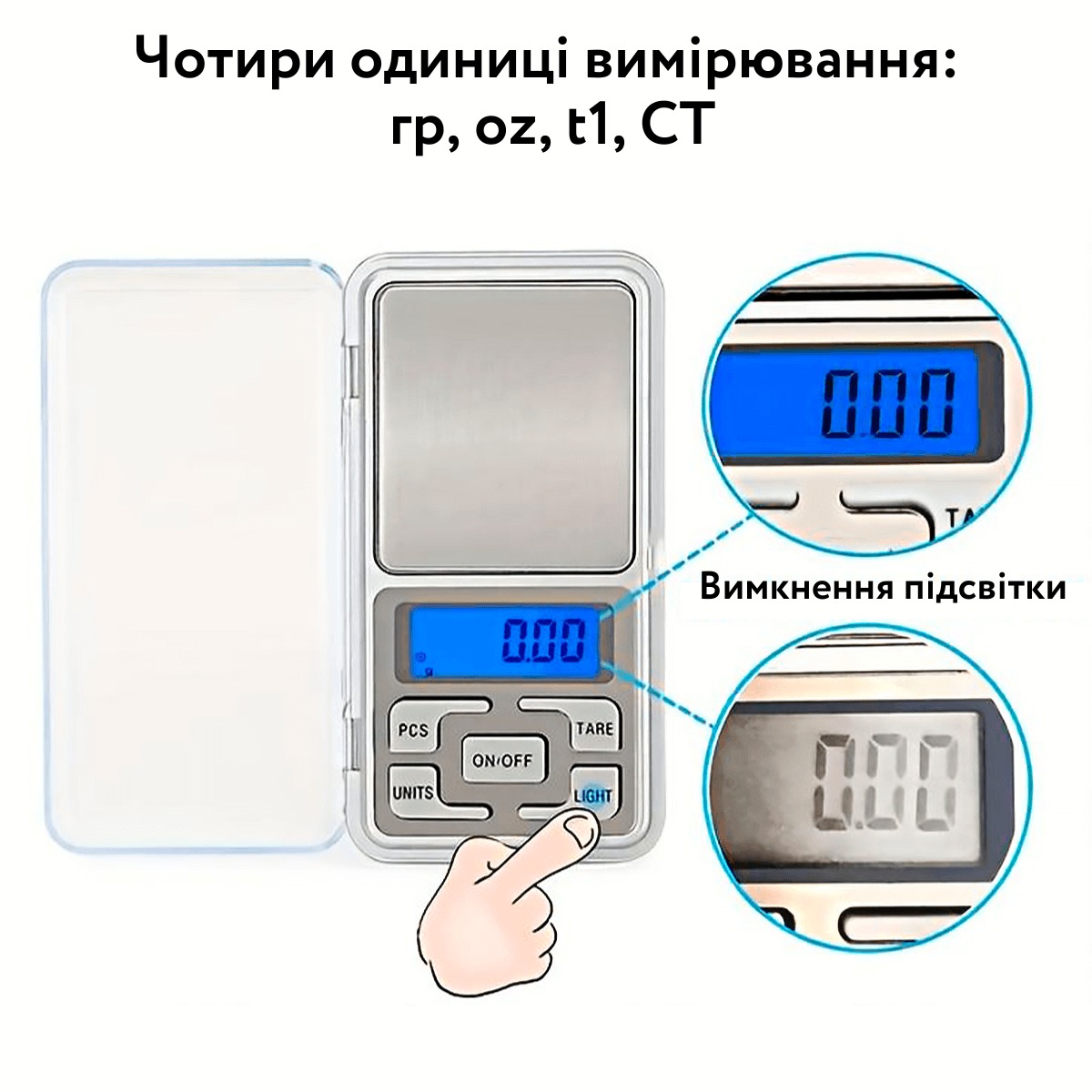 Компактні електронні ваги з синім підсвічуванням ідеально підійдуть для зважування ювелірних виробів, чаю, медицина та ін. Незамінний помічник для домогосподарок, рибалок, мисливців, медиків, ювелірів, колекціонерів тощо. Компактний дизайн, зручні для перенесення в кишені.