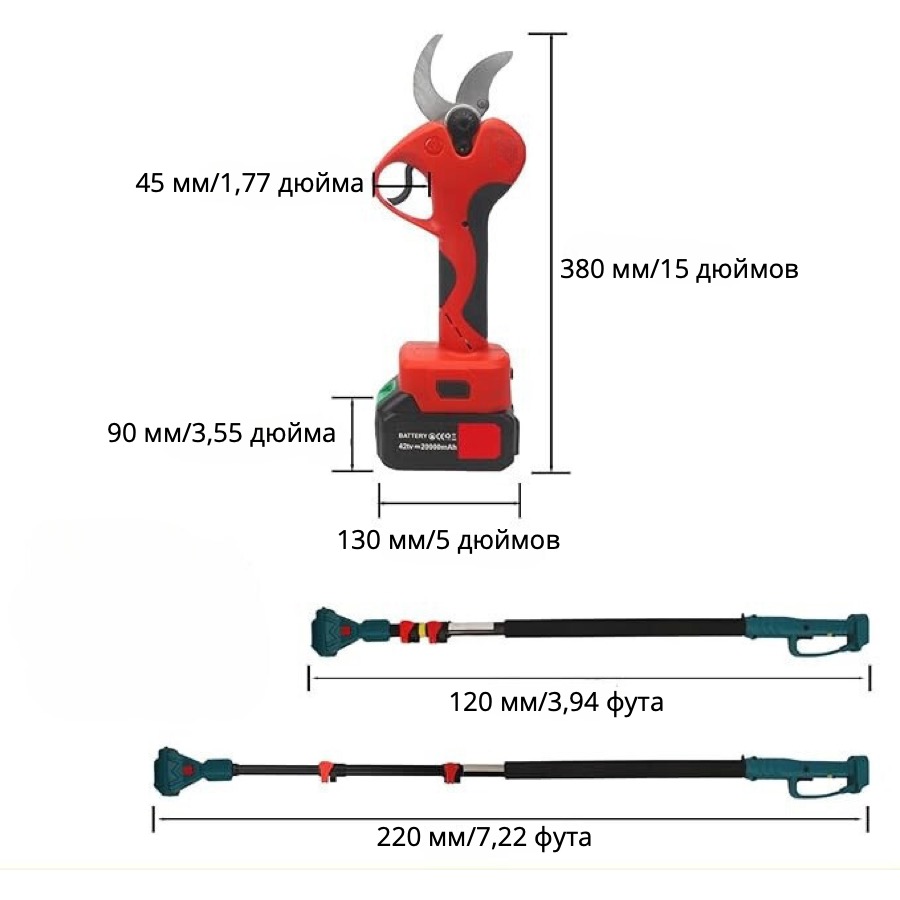 Акумуляторний секатор 2АКБ 24V з подовжувачем 2м. Садові ножиці високоріз