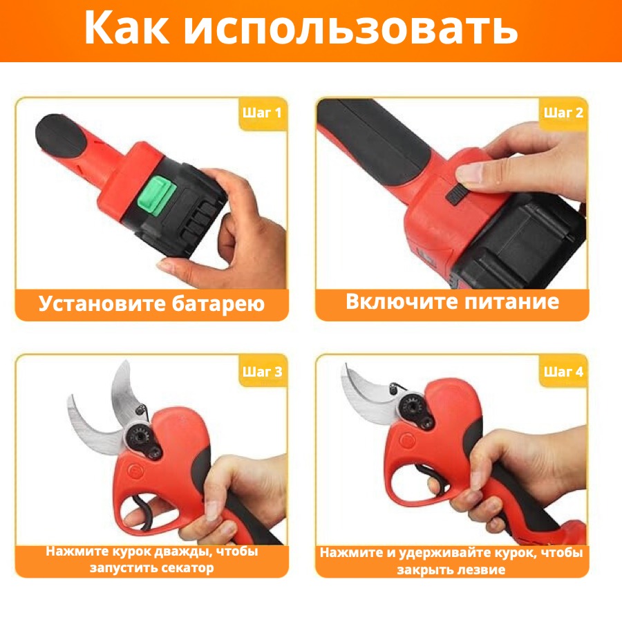 Акумуляторні садові ножиці оснащені потужним двигуном, який може легко зрізати гілки завтовшки до 3 сантиметрів.