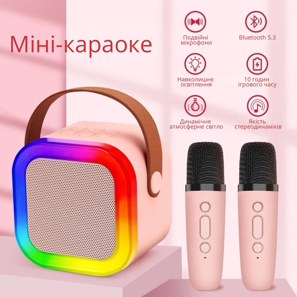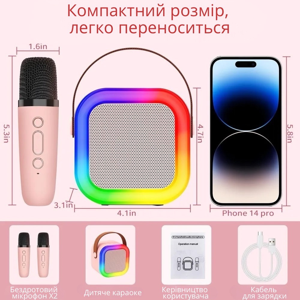 Караоке колонка з RGB підсвічуванням та бездротовим мікрофоном K12 Рожева