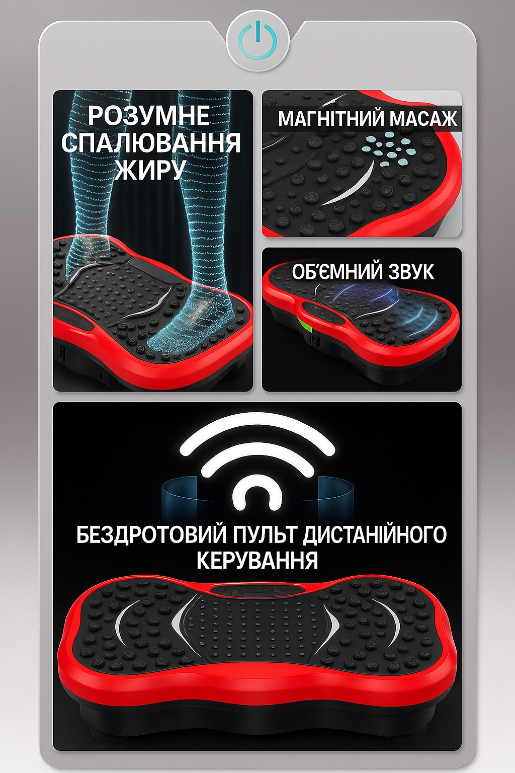 Компактна та функціональна віброплатформа — ідеальне рішення для зміцнення м’язів, зниження ваги та відновлення після фізичних навантажень. Вертикальні коливання задіюють не лише основні, а й глибокі стабілізуючі м’язи, роблячи кожне тренування максимально ефективним.