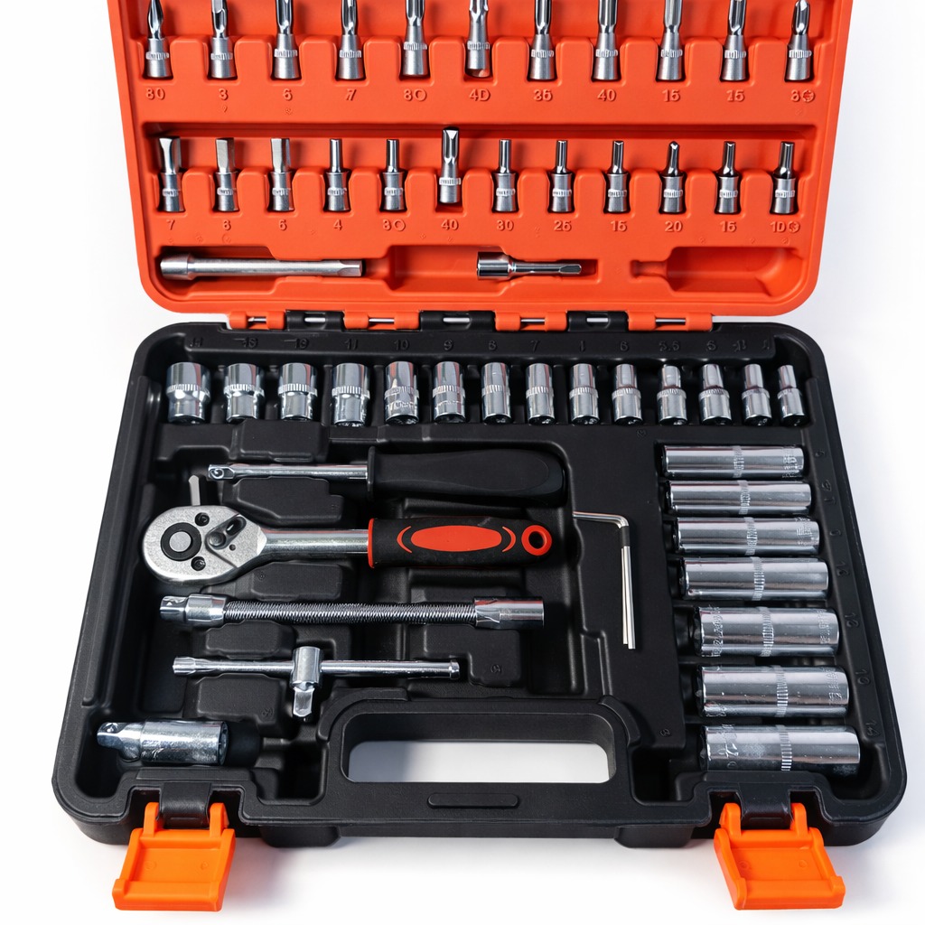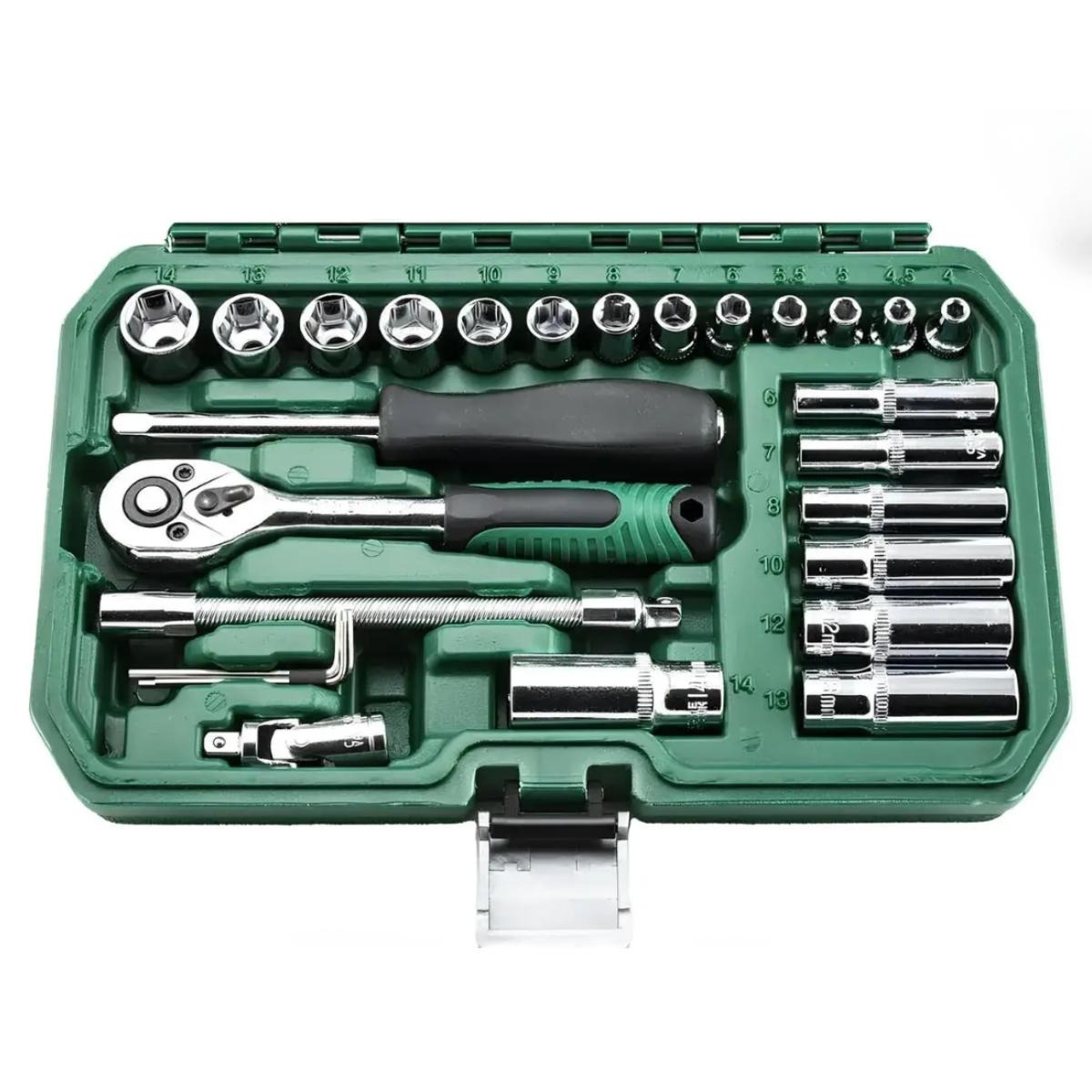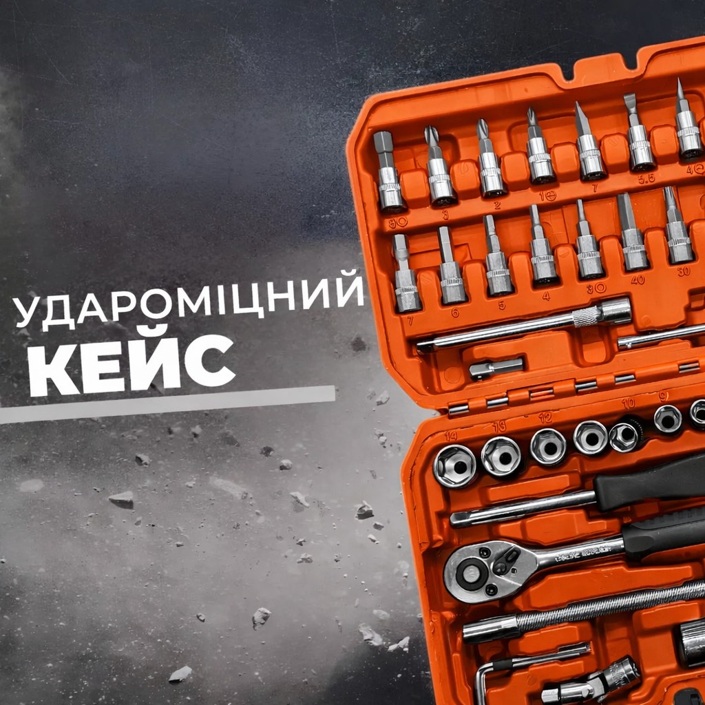 Універсальний набір інструментів стане надійним помічником для ремонту та обслуговування автомобіля. Він ідеально підходить як для професіоналів, так і для автолюбителів, які віддають перевагу самостійному виконанню робіт. Усі елементи виготовлені з високоякісної вуглецевої сталі, що гарантує довговічність та стійкість до навантажень.