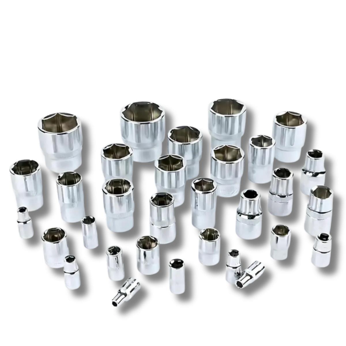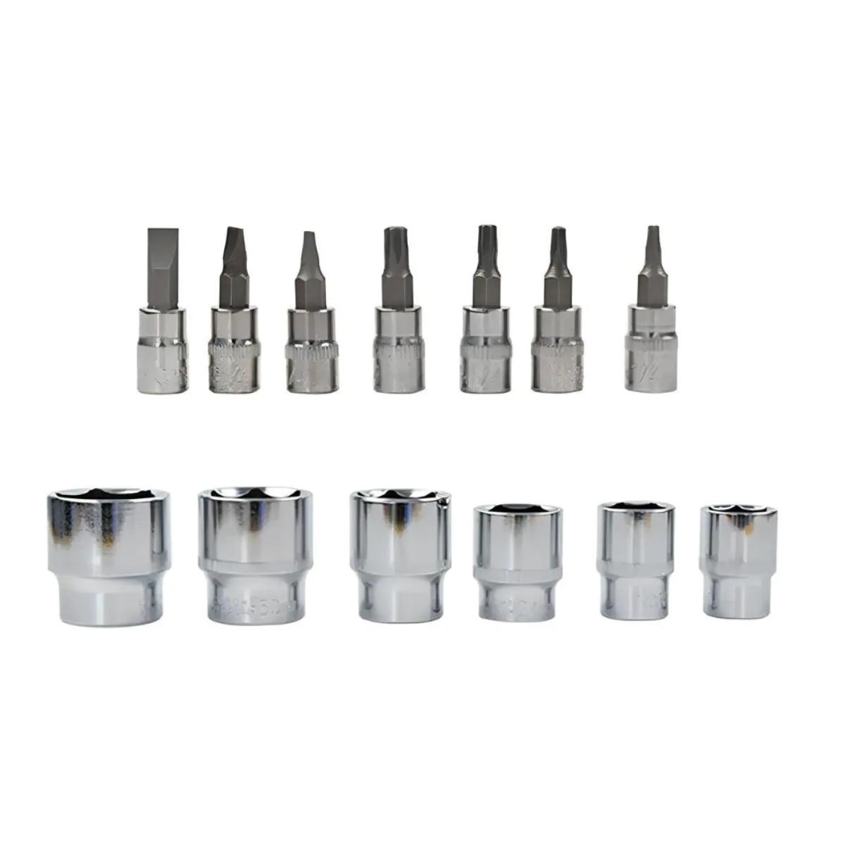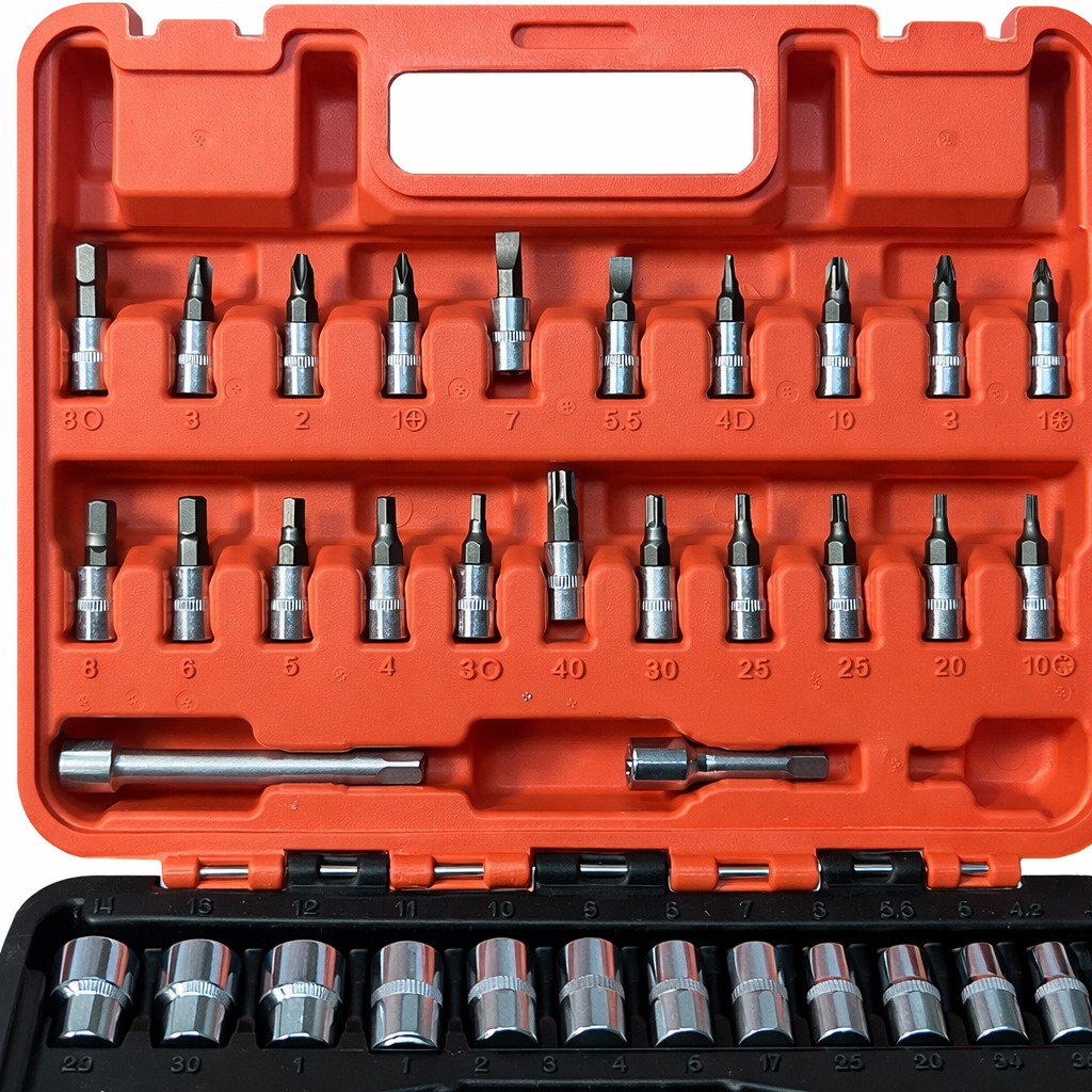 Універсальний набір інструментів стане надійним помічником для ремонту та обслуговування автомобіля. Він ідеально підходить як для професіоналів, так і для автолюбителів, які віддають перевагу самостійному виконанню робіт. Усі елементи виготовлені з високоякісної вуглецевої сталі, що гарантує довговічність та стійкість до навантажень.