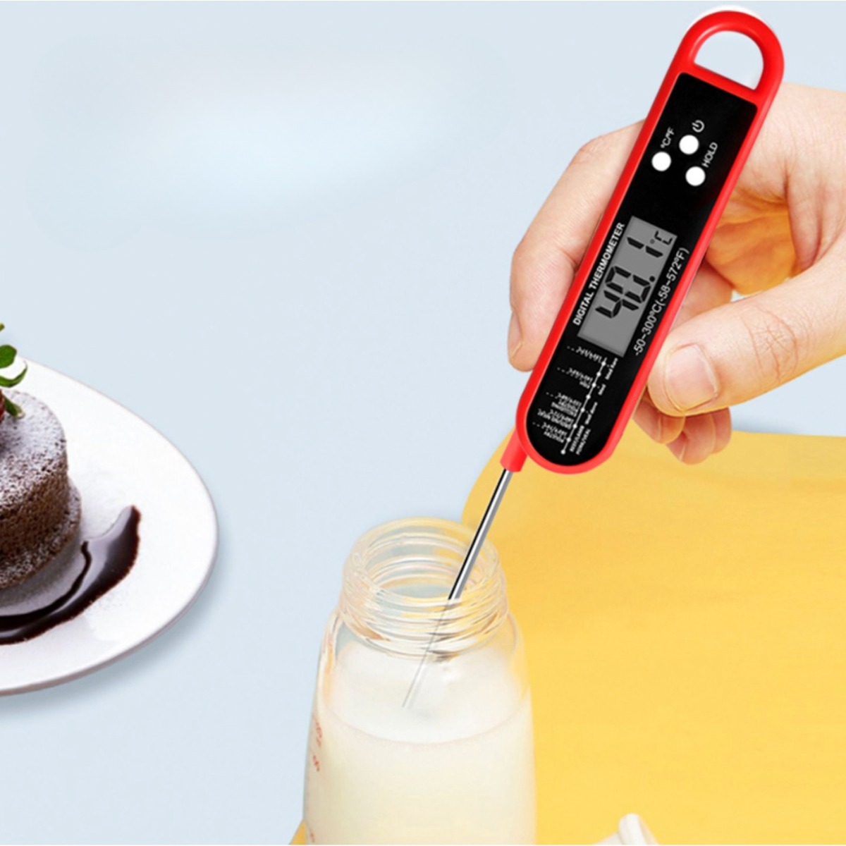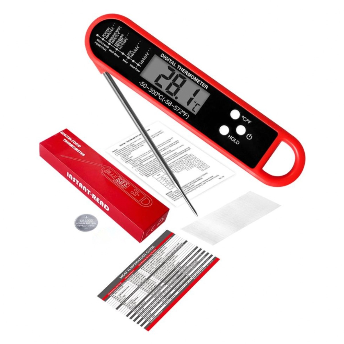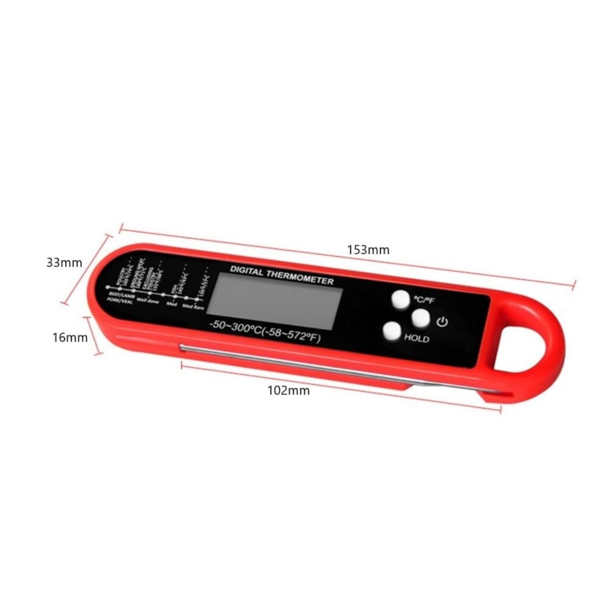 Digital Thermometer — складаний прилад для вимірювання температури продуктів і рідин у діапазоні від -50 градусів до +300 градусів . Завдяки високій точності та швидкому відгуку він стане незамінним інструментом під час приготування різноманітних страв — від стейків і бургерів до курки, риби, випічки та десертів.