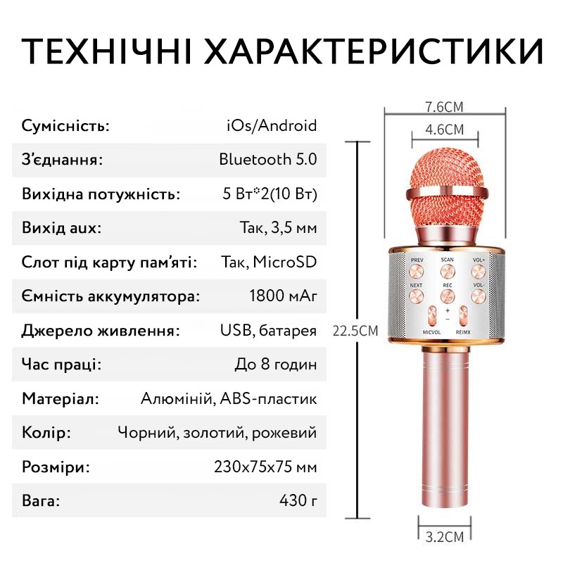 | Найменування товару | Bluetooth мікрофон з колонкою |