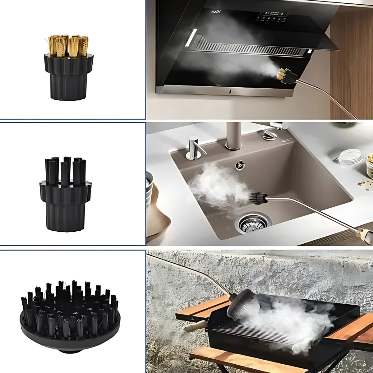 Комплект із 8 насадок робить прилад придатним для різних завдань: чищення килимів, кухонних поверхонь, скла, плитки та важкодоступних місць.